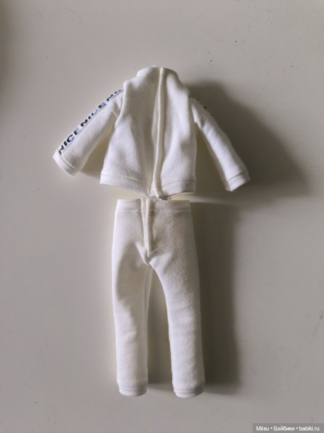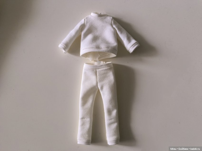 3. Кофта и штаны / спортивный костюм из очень приятной мягкой белой ткани с нашивками по всей длине рукавов. Автора/производство, к сожалению, не знаю. В идеальном состоянии, цвет однородный белый, никаких нюансов. Не использовался, надела на куклу только для фото (больше фото в комментариях).