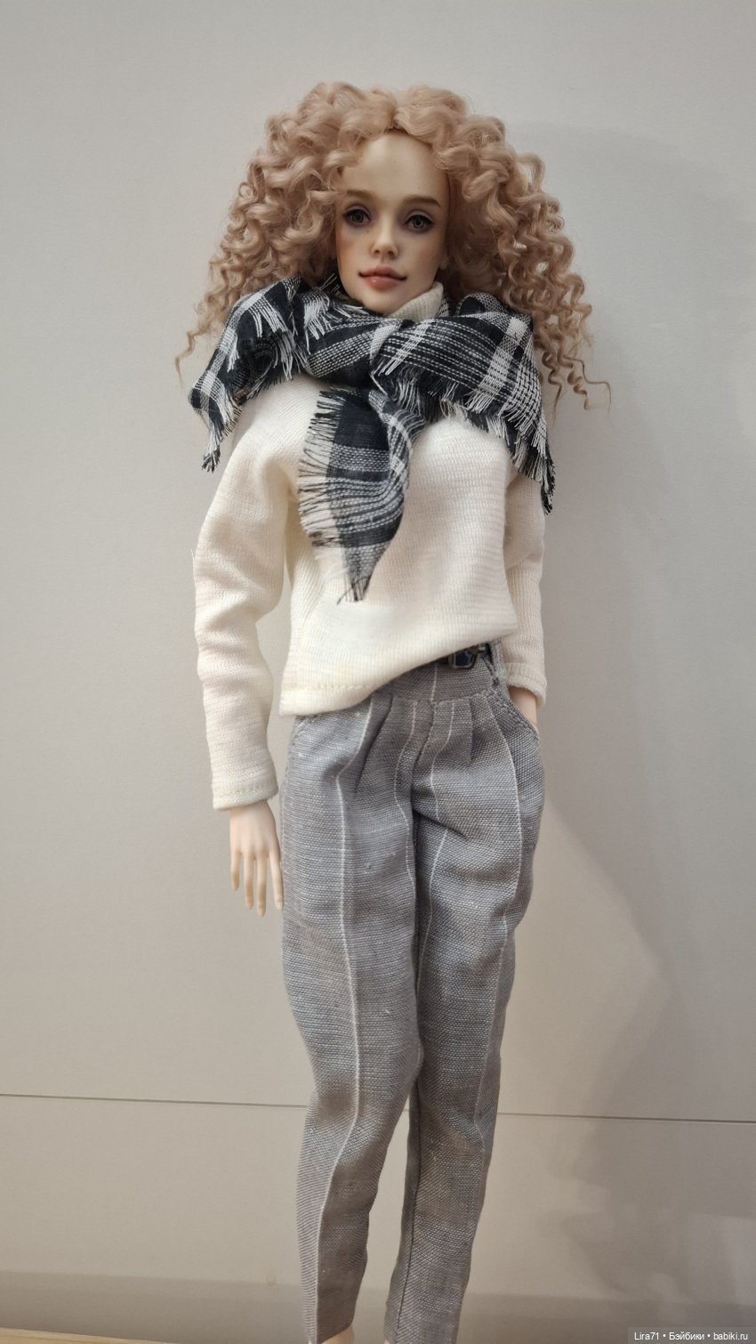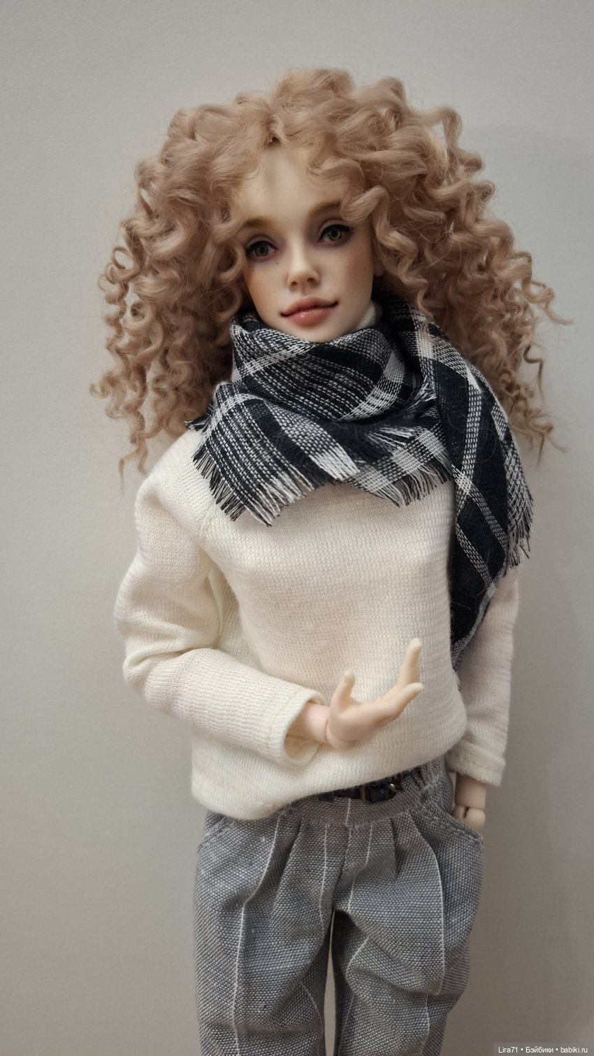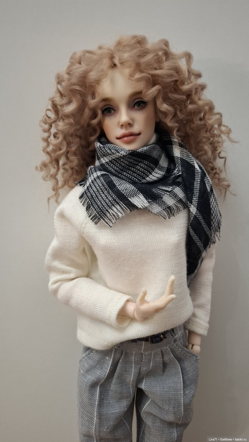 Брюки из льна с функциональными карманами и шлевками. Застегиваются сзади на кнопки. Ремень из кожи. Джемпер и шапочка из трикотажа шерсть с хлопком молочного цвета, джемпер одевается через голову. Добавила к комплекту мягенький кардиган из шерсти мериноса с поясом. Кардиган сшитый из вязанного полотна. Комплект шился по меркам кукол Лосевой, но подойдёт много авторским девочкам с похожими параметрами.