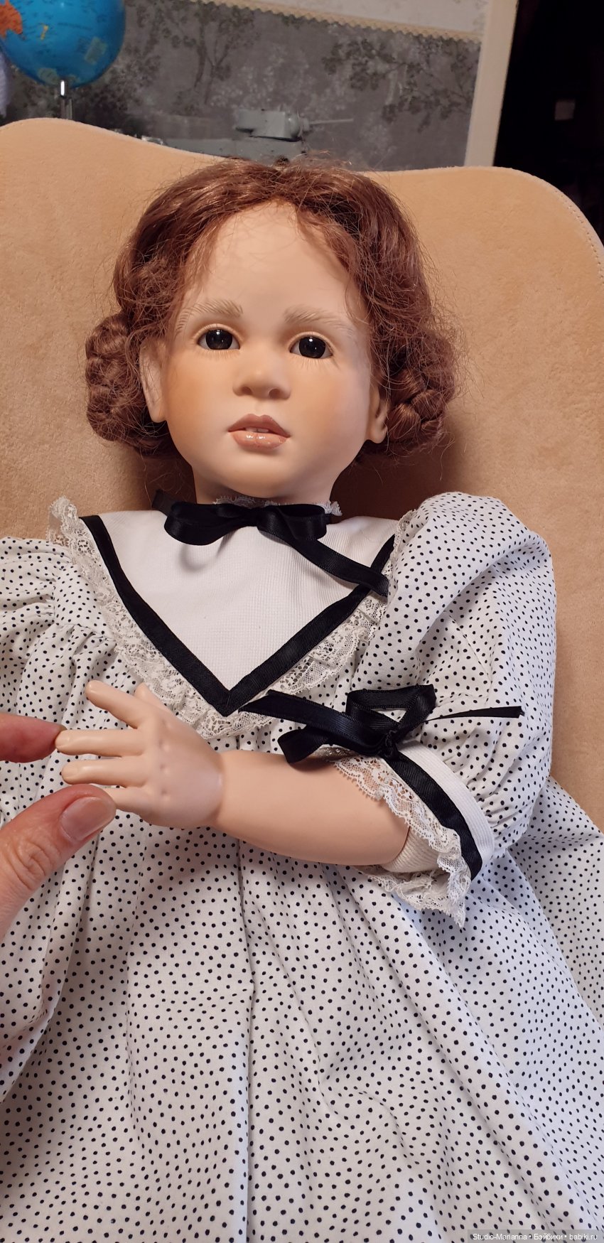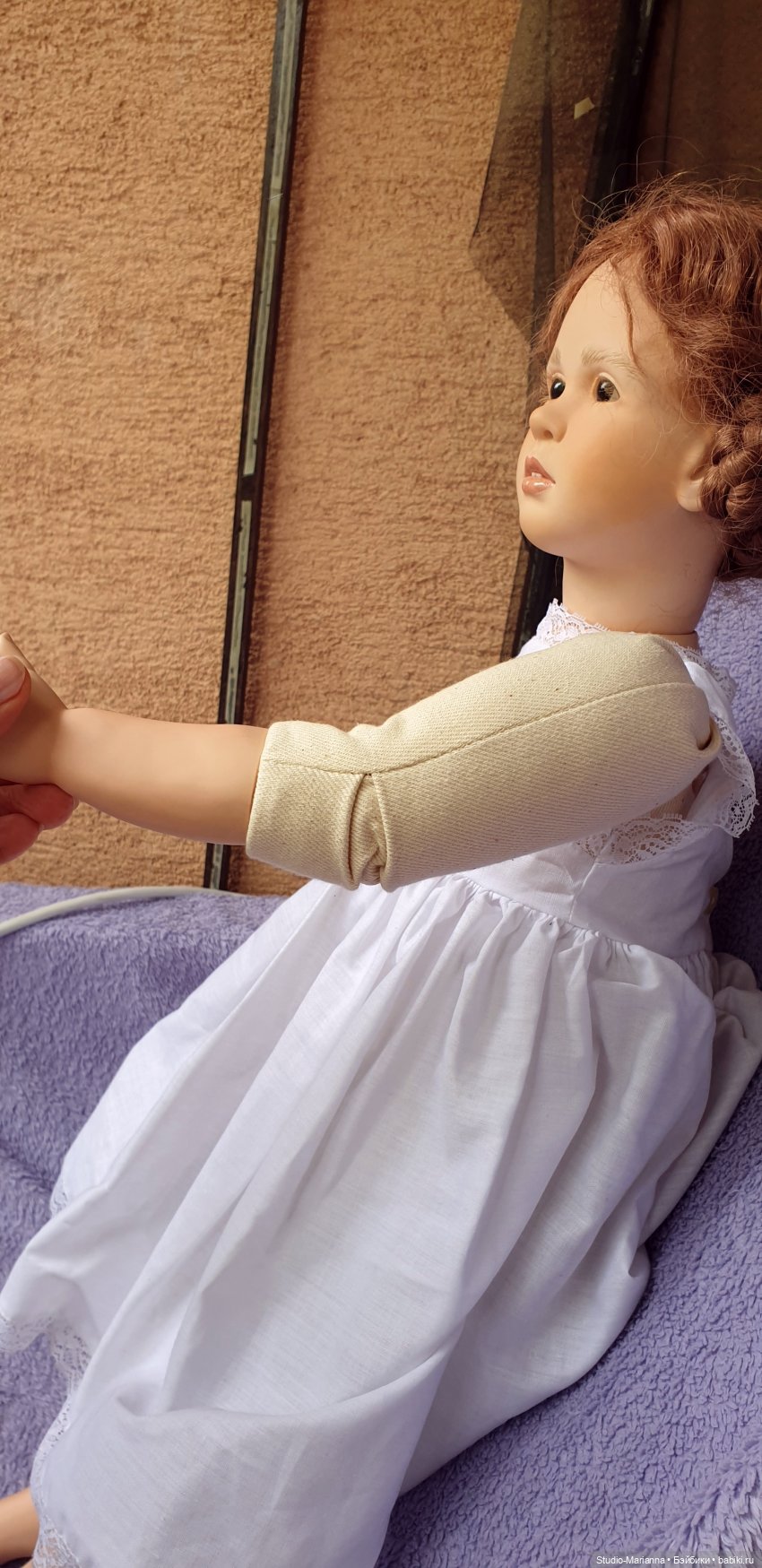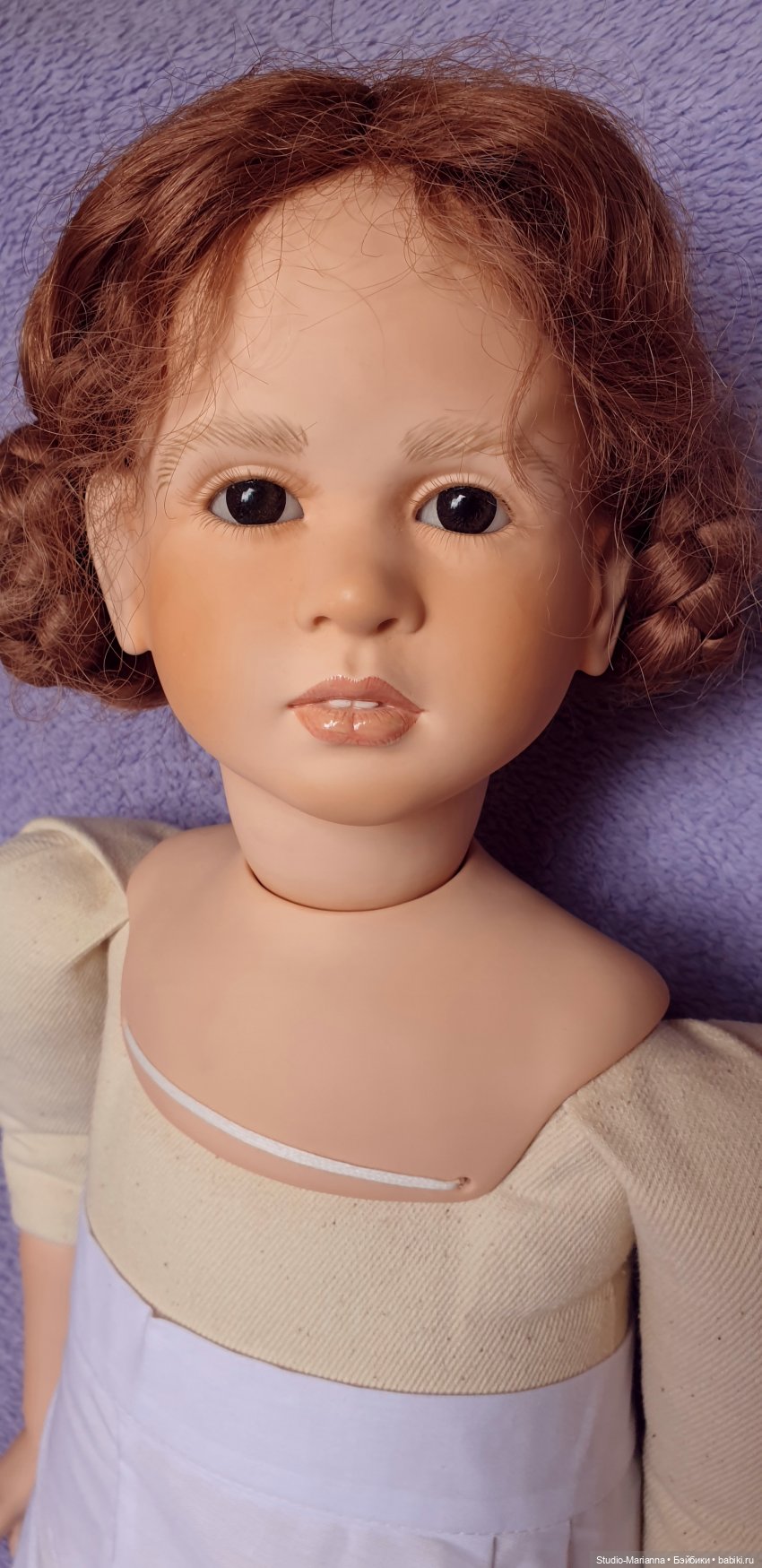 Одно из самых красивых и нежных личиков у Рут Треффайзен. Красивая лепка ручек и ножек. Очень качественный натуральный аутфит (есть небольшие пятнышки сзади, стирать не пробовала (смотрите фотографии!)