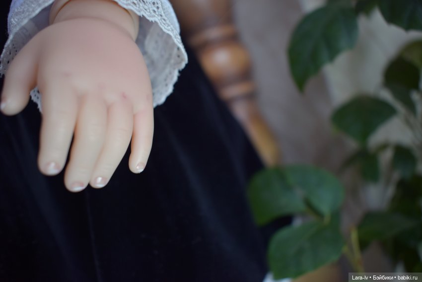 · Состояние: Отличное. Кукла хранилась в закрытой витрине, вдали от солнца, пыли и перепадов влажности. Мейк, маникюр и педикюр ровные, без вмешательств и корректировки. Тон ровный, без выгораний.