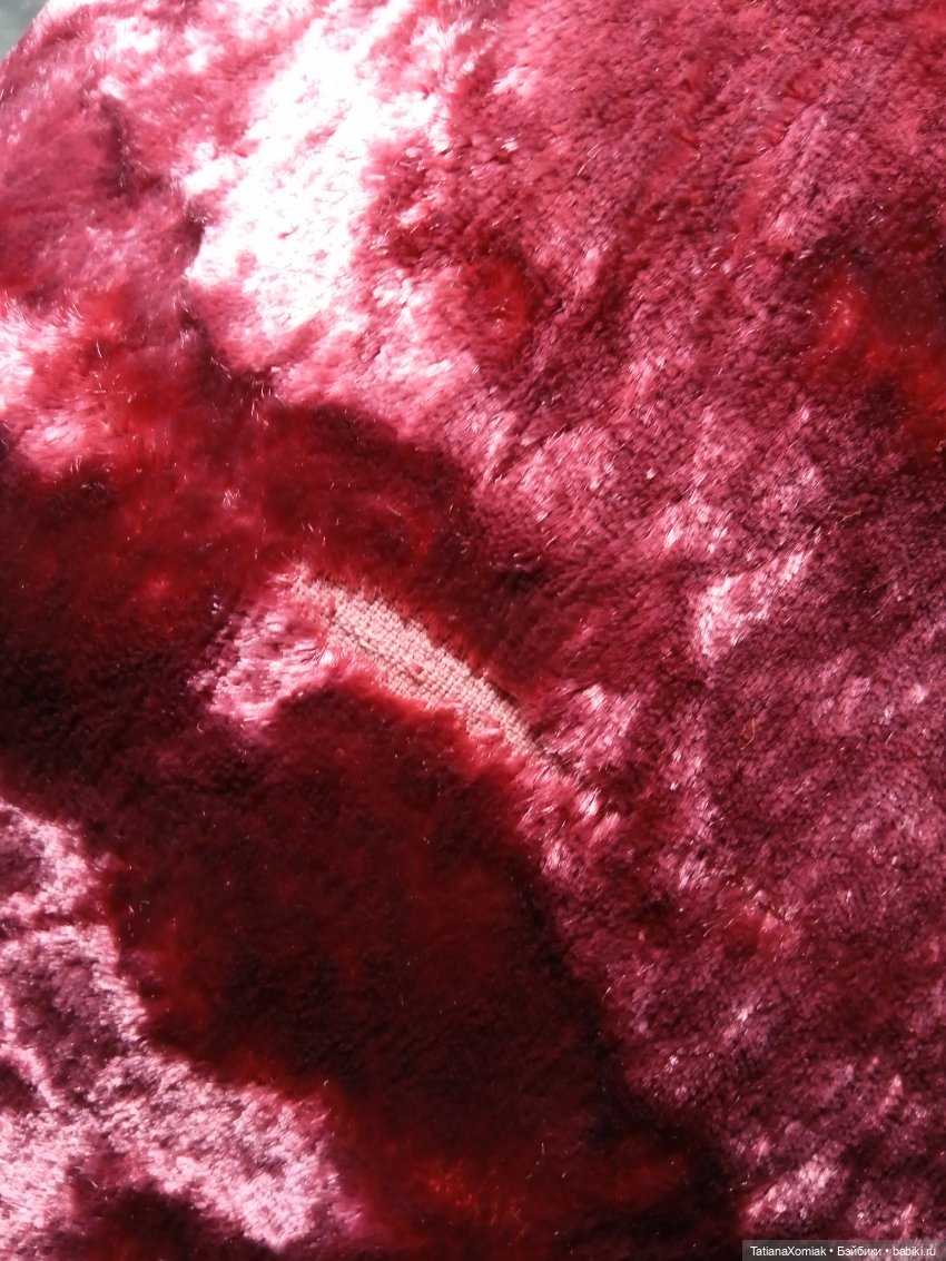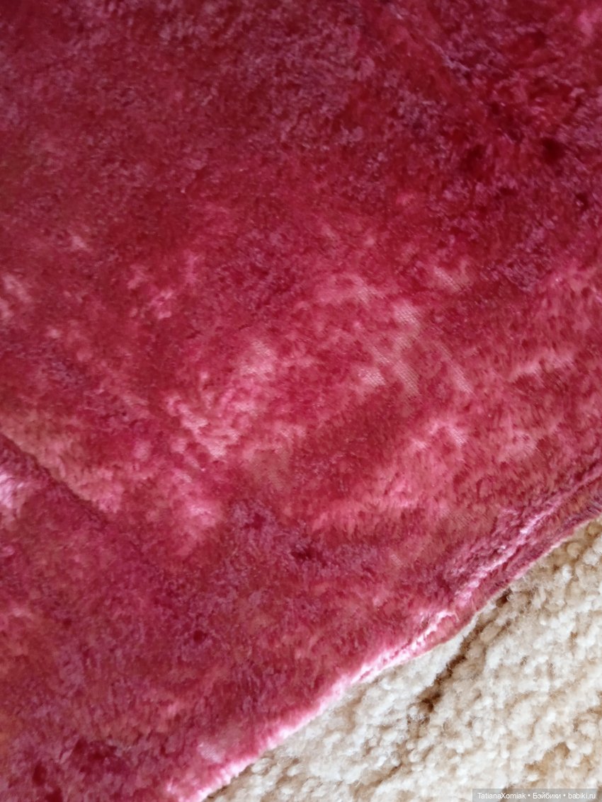 Плюш №1 малинового цвета: размер 120 см на 60 см, кусочек застрочен по краю. С изнанки есть заметное пятно (фото в комментариях)