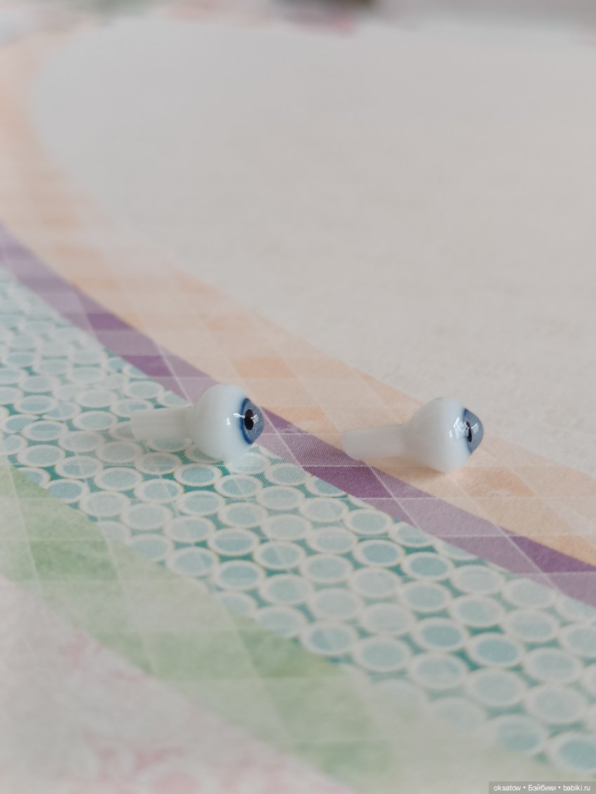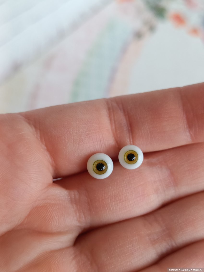 На зрачке одного глаза есть маленкий заплыв краски от радужки, на фото видно, + эти глаза стояли три года на моей кукле, поэтому уценяю их.