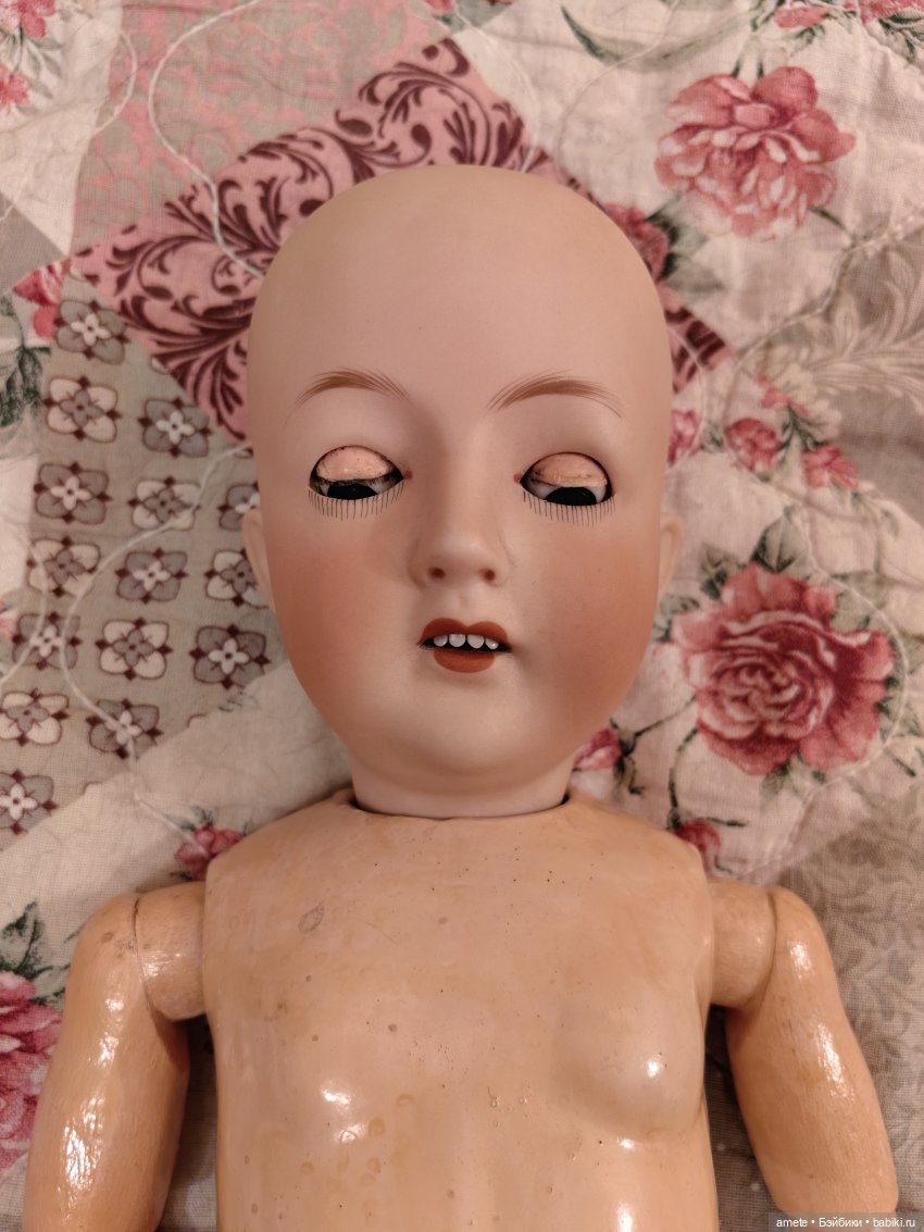 Знакомьтесь — антикварная красотка Ревало. Головка — бисквитный фарфор в идеальной сохранности, глазки серо-голубые антикварные спящие, ротик приоткрыт, зубки родные. У куклы антикварный парик из натурального волоса.