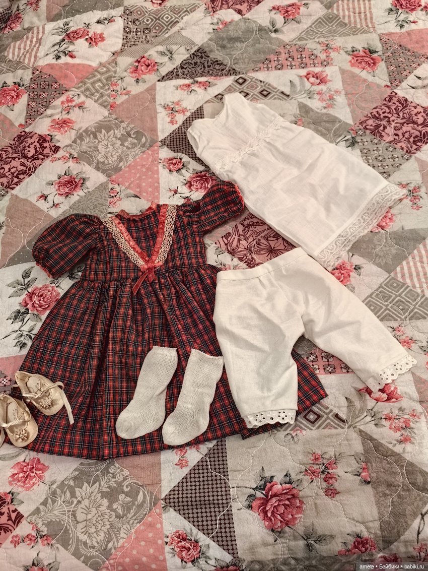Кукла одета в винтажное платье, отделанное антикварной тесьмой и антикварными кружевами, нижнюю рубашечку из антикварной ткани с антикварным кружевом и винтажные панталоны. Туфельки тоже винтажные.