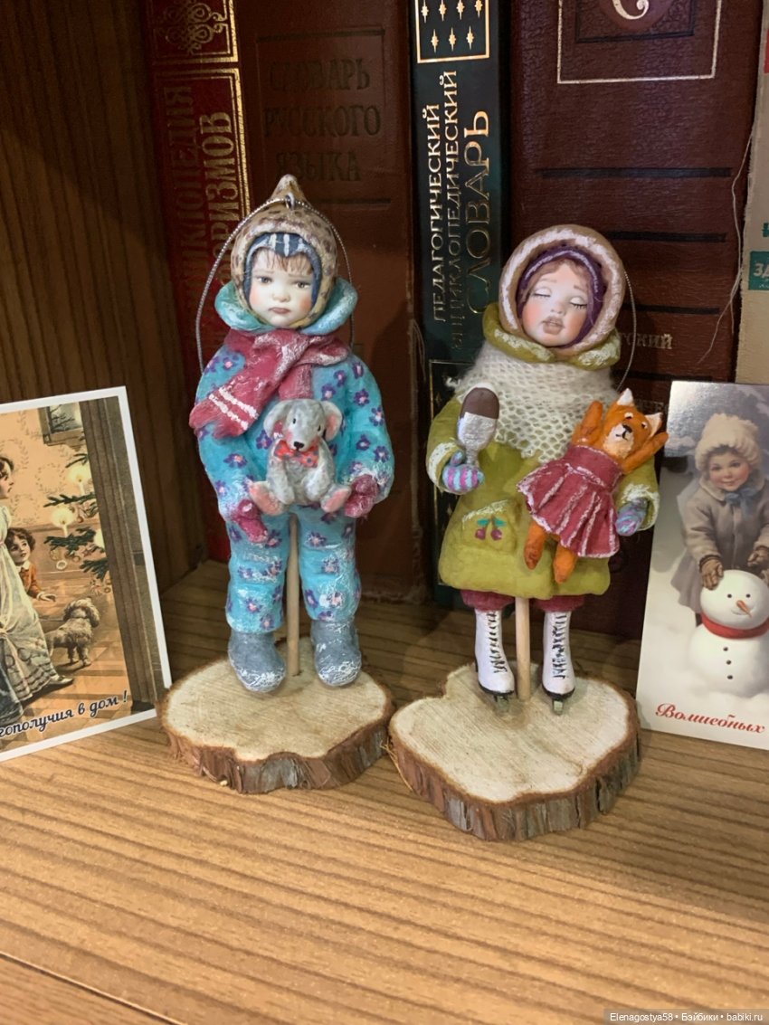 Выполнены по старой технологии Ватной игрушки, в работе использованы вата льняная и хлопковая, клейстер, лица из запекаемой глины Артифакт, расписаны мною акриловыми красками, закреплены лаком