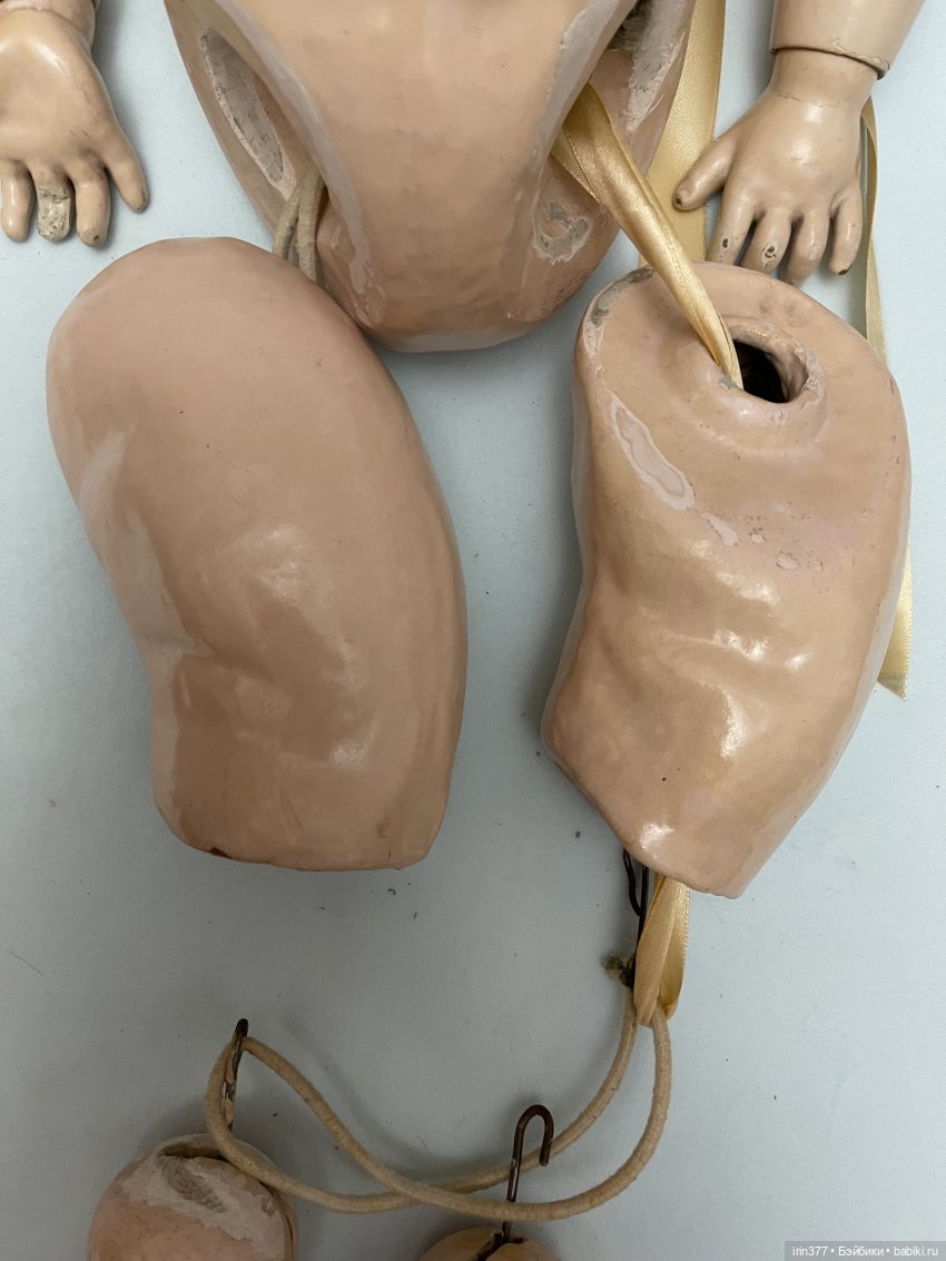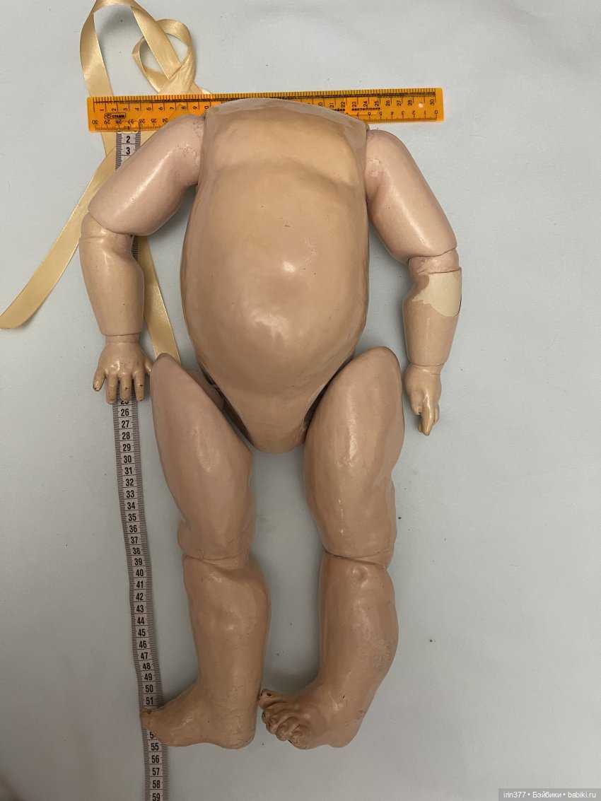 Продается большое французское антикварное тело тоддлер в хорошем состоянии, размер 55 см, лунка 6,5 см. Есть скольчики, сходы покрытия, один пальчик сколот. Лунки хорошие, кроме одной бедренной.
