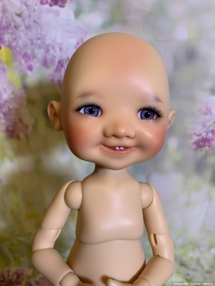 Продам улыбашечку Пельмешку от Meadow dolls цвет Soft Honey.Не играла.Совсем чуть была наряжена и стояла в застеклённой витрине.Потом была убрана в мешочке в шкаф.Рост 28 см.Полный комплект от автора: куколка, матрасик, родные глазки, карточка автора, маска.Натяжка хорошая, сколов, трещин нет, могут быть световые полосочки, но это норма у этой фирмы, на щёчках чуть светлые пятнышки есть на румянце (такую покупала).Продажа без парика!