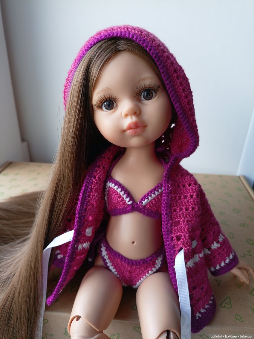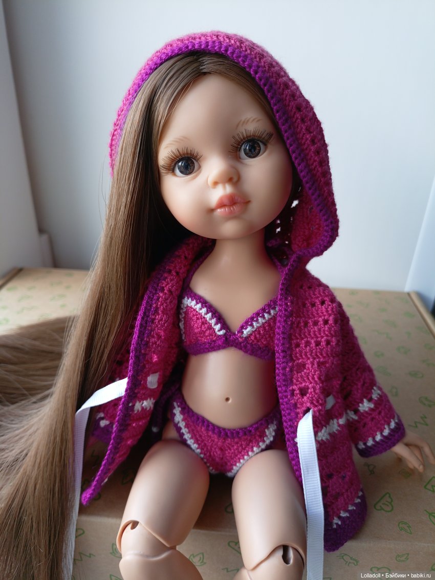Кукла Paola Reina Кэрол Рапунцель в вязанном купальнике «хиппи» и халатике с капюшоном.