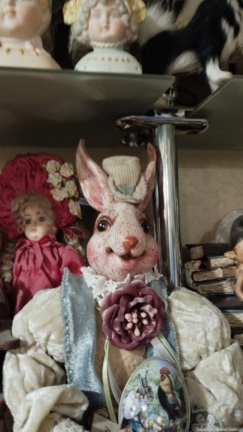 Парочка фарфоровых кроликов в винтажной одежде. США.