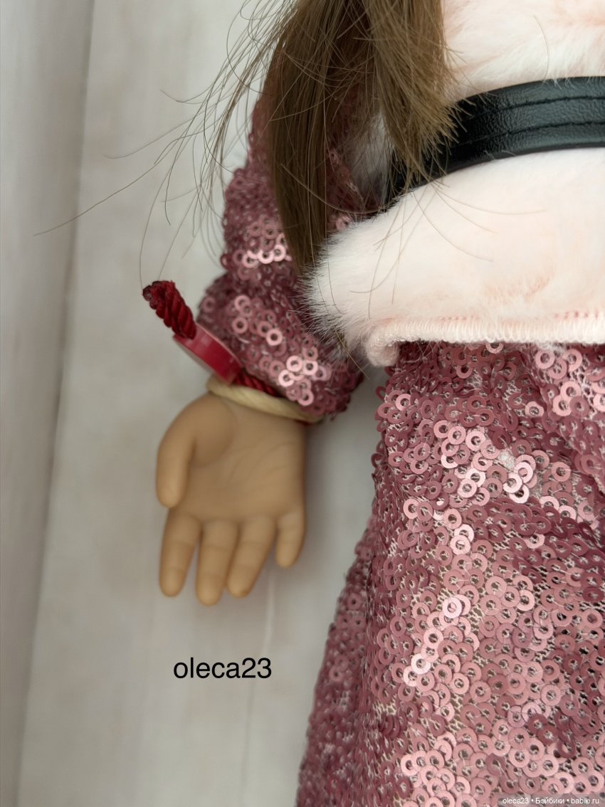 Стильная куколка в праздничном платье с пайетками, элегантном жилете из искусственного меха с поясом, ботинках на шнуровке и с шикарным бантом в волосах. Каждая деталь отражает высокое качество изготовления и любовь к дизайну. Поистине особенный подарок для всех: эта кукла сочетает в себе качество, стиль и праздничное очарование. Кукла, которую будут беречь и помнить.