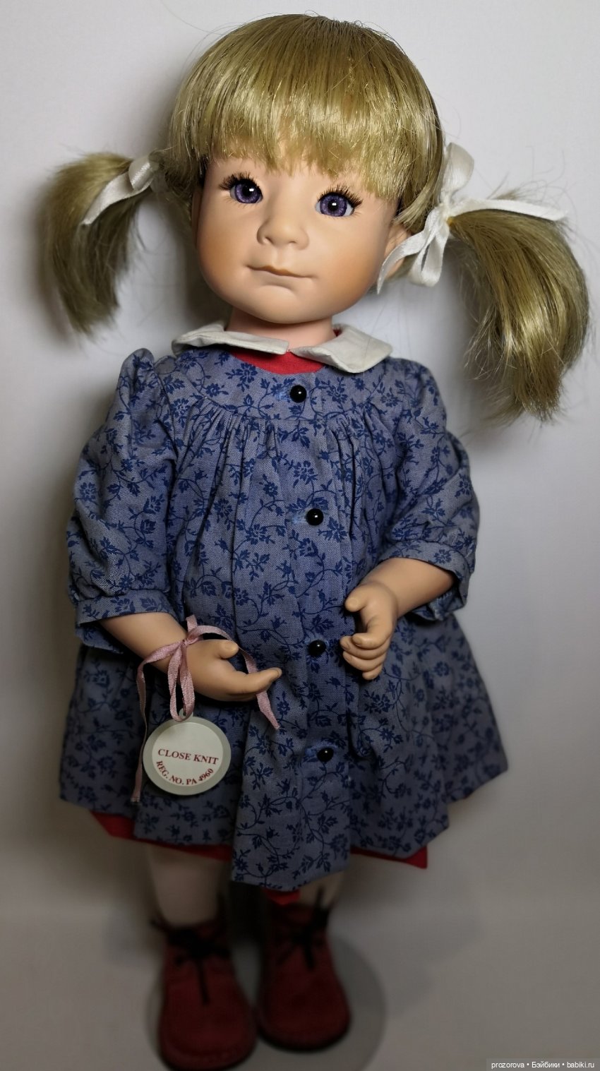 42 см, полностью виниловая. В руках держит начатое вязание на деревянных спицах.