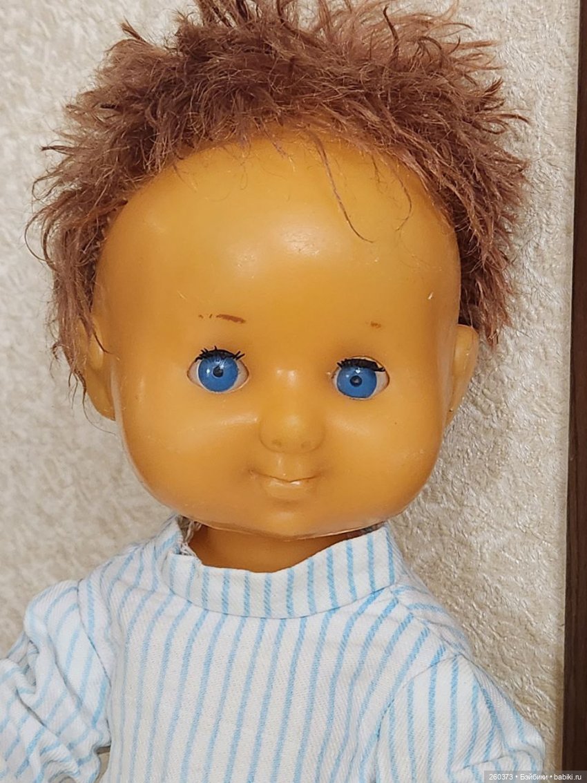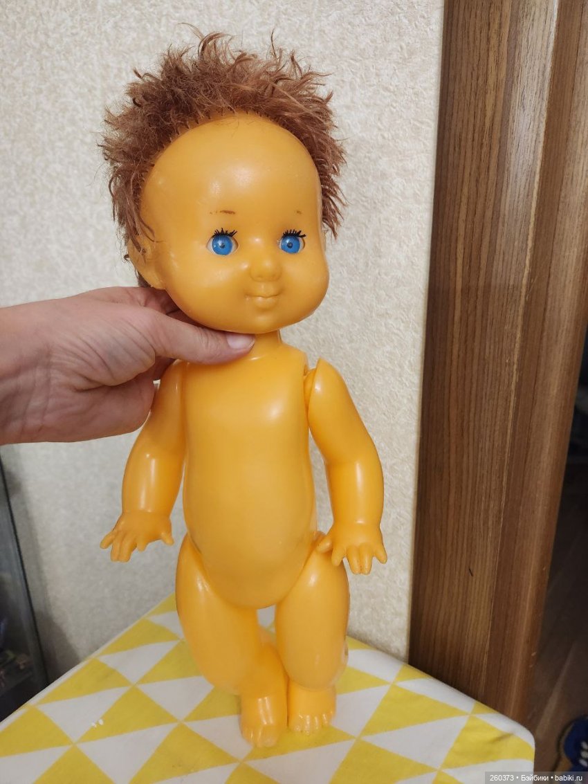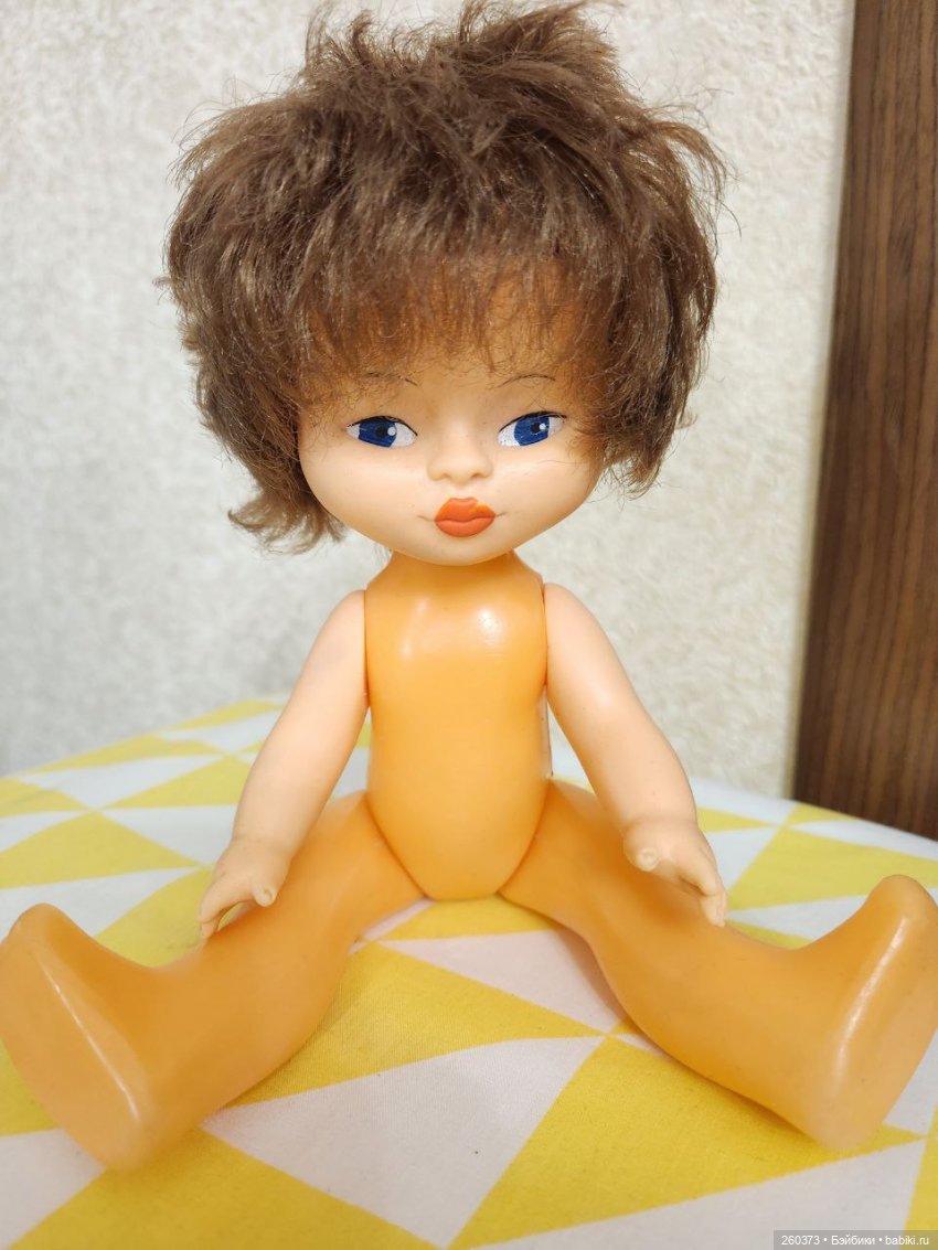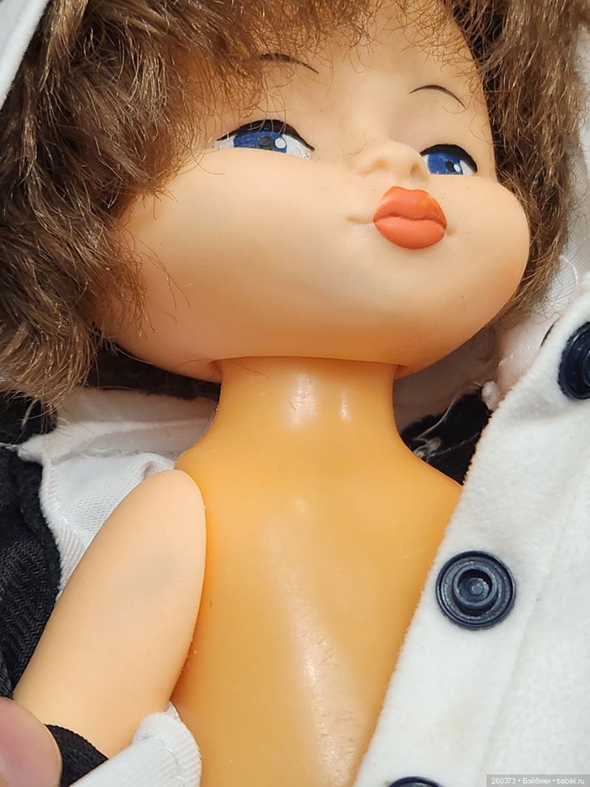 НедостаткиКукла Даша: отстрижены волосы, треснуто тело около ножки(см.фото) растянуты резинки, мейк поврежден. Кукла Кругозор: часть мизинчика отсутствует, темные пятна на лице и правой руке, стерта губка