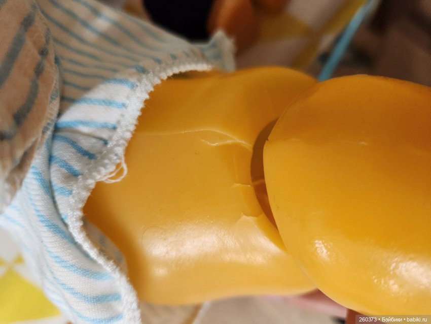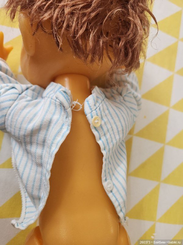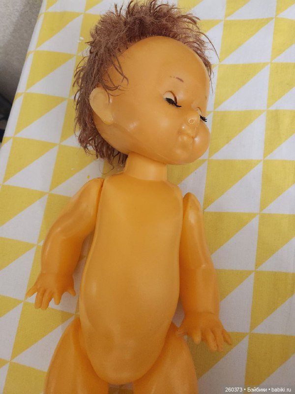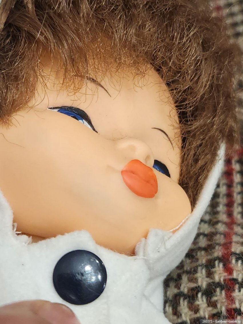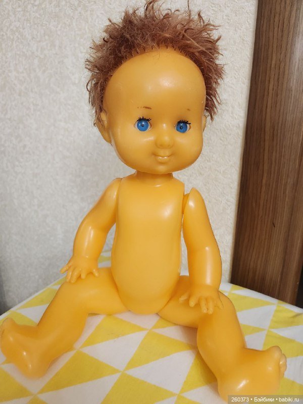 НедостаткиКукла Даша: отстрижены волосы, треснуто тело около ножки(см.фото) растянуты резинки, мейк поврежден. Кукла Кругозор: часть мизинчика отсутствует, темные пятна на лице и правой руке, стерта губка