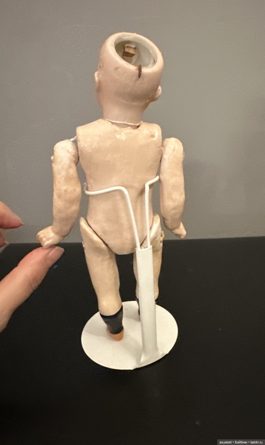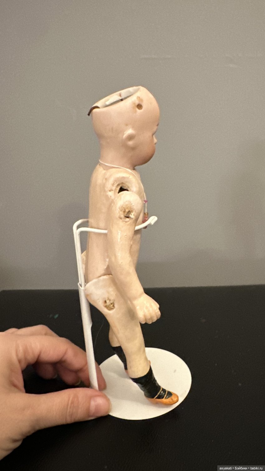 рост 18 см, тело деревянно-композитное, 5 точек артикуляции, глаза спящие, родной парик и аутфит, сколов нет как на теле так и на голове.