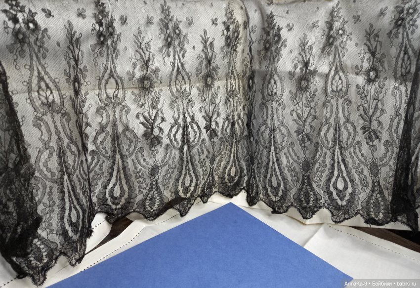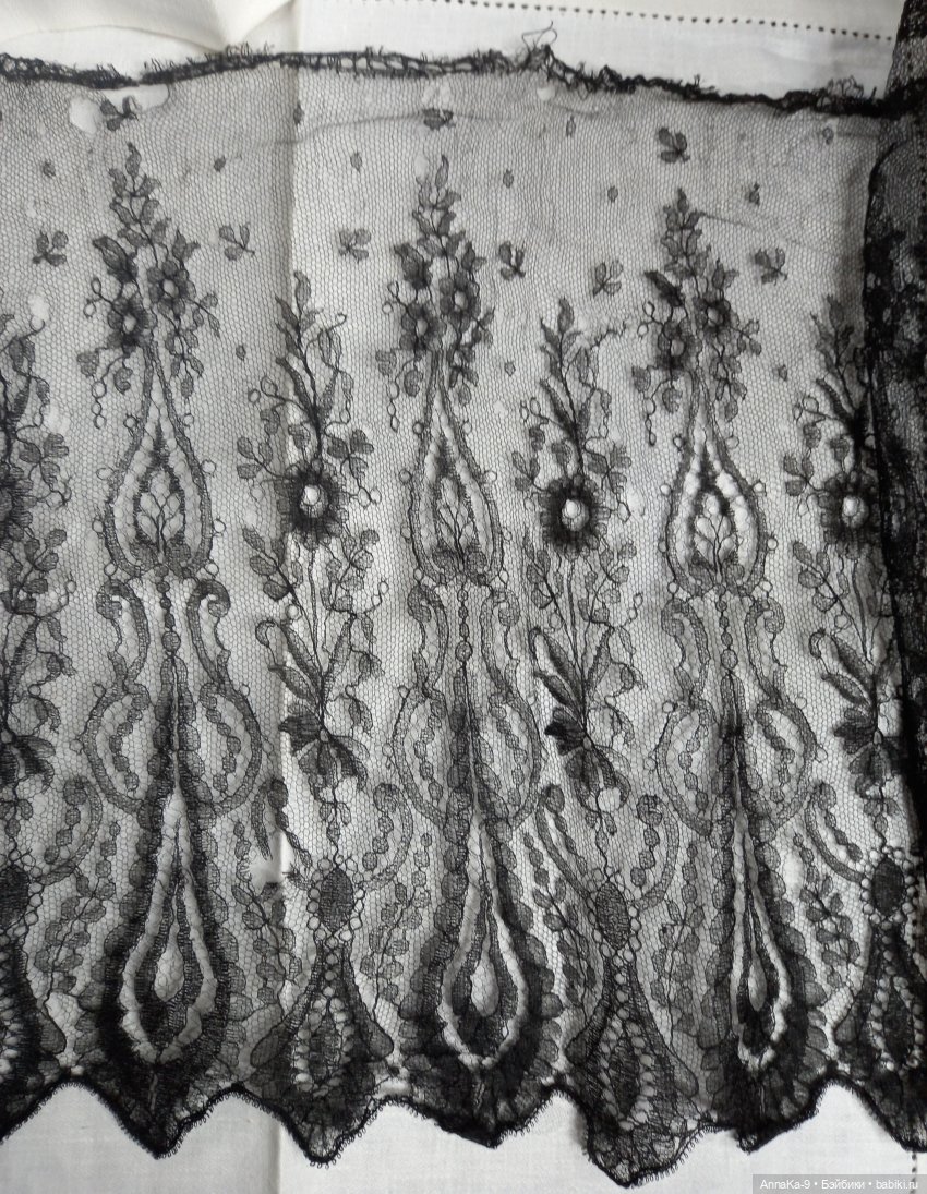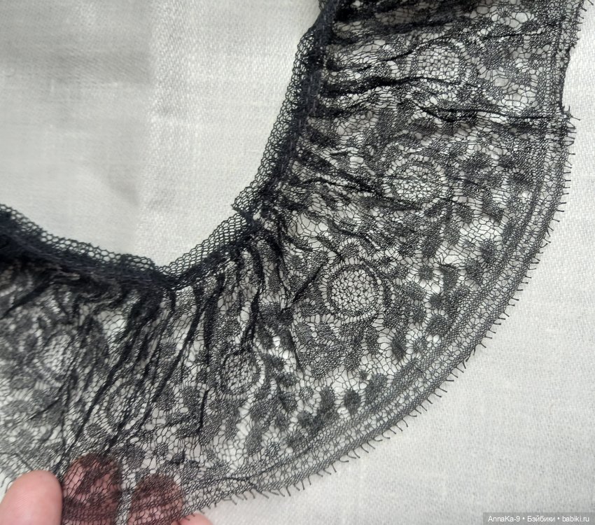 На первом фото две оборки в низу, 100% натуральный тутовый шёлк, наинежнейшее кружево, красивый узор шантильи, словно паутинка, размер по сборотому краю 42 см, высота 6,5 см. Есть небольшой дефект, разошёлся нижни фистон, доп фото по запросу. 1500 рублей за оборку. Можно использовать, как воротник или манжеты.