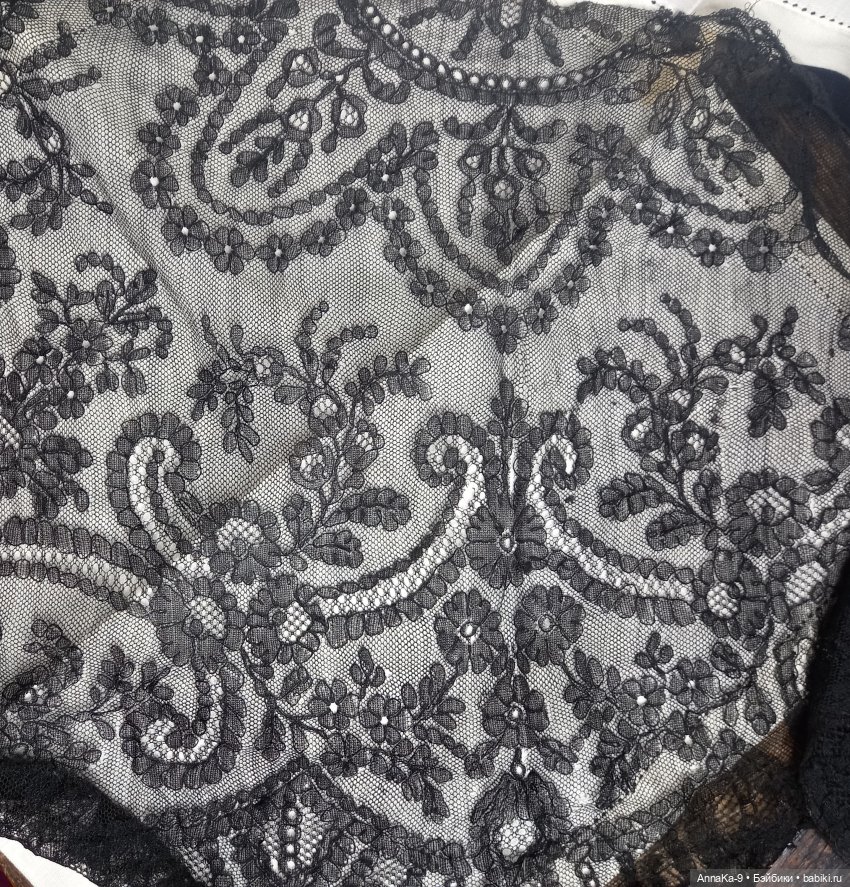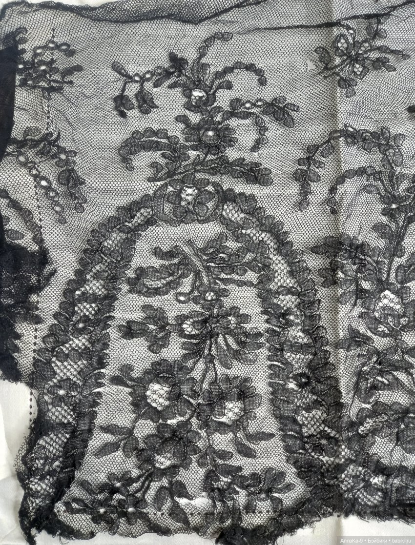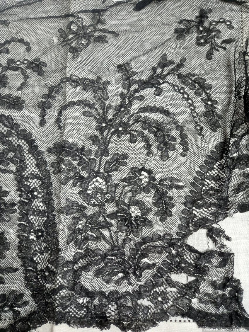 Большой отрез наиредчайшего кружева шантильи из натурального 100% тутового шёлка, предполагаю, что время создания сего шедевра до 1900 года. Есть дырочки, учтено в цене, пожалуйста перед покупкой запросите доп фото всего полотна. Размер 85 см на 35 см. Цена 2500 рублей.