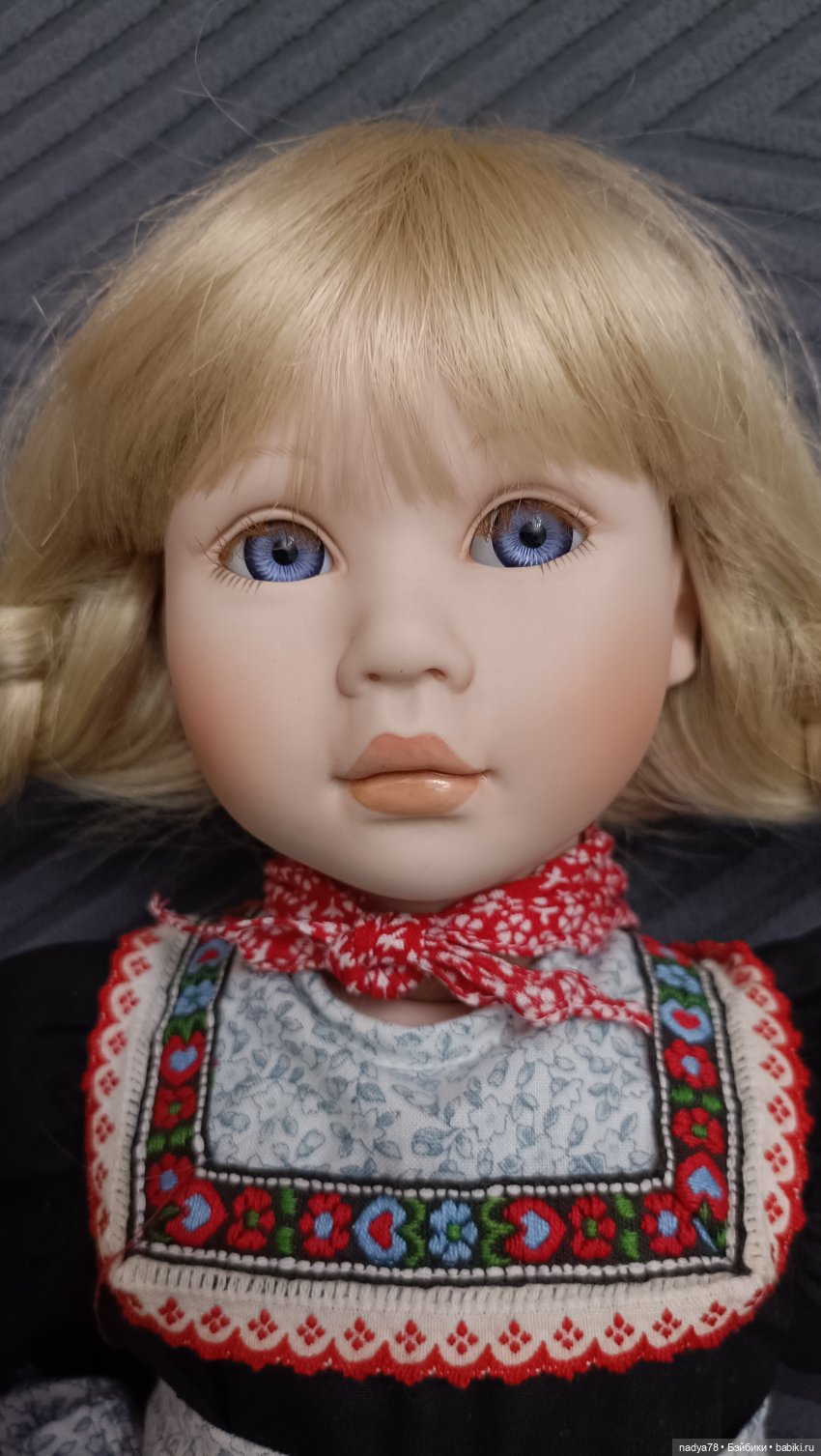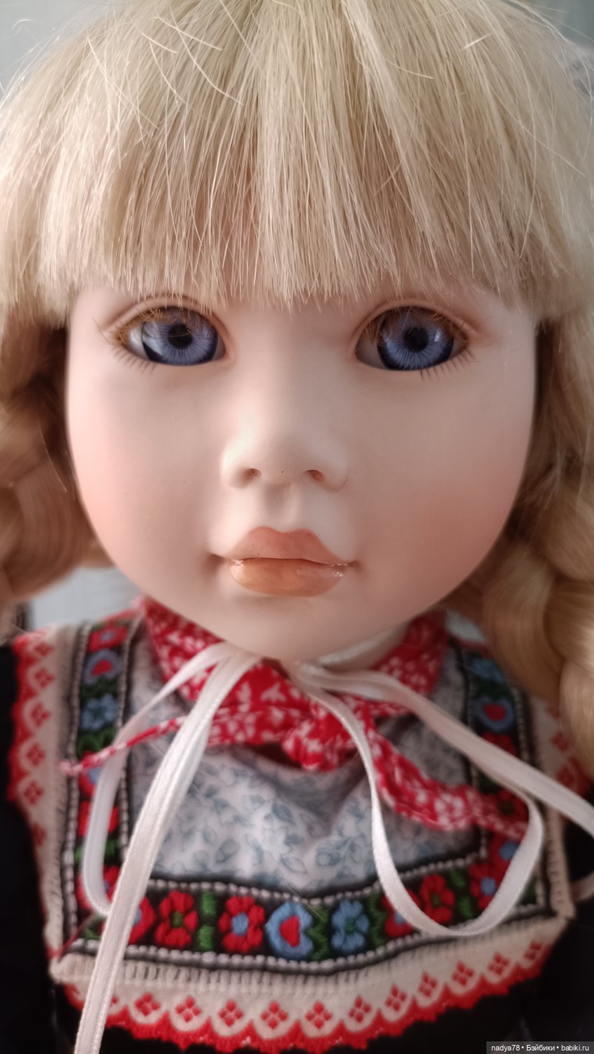 Ищет дом редкая коллекционная фарфоровая кукла Pauline Bjonness Jacobsen в образе норвежской девочки, лимит указан на теле и на шее куклы, рост 21" дюйм или 53см.