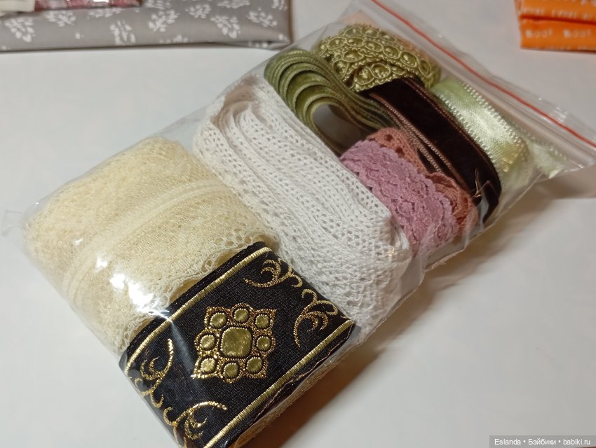 Ткани, тесьма, ленты для кукол (лот)