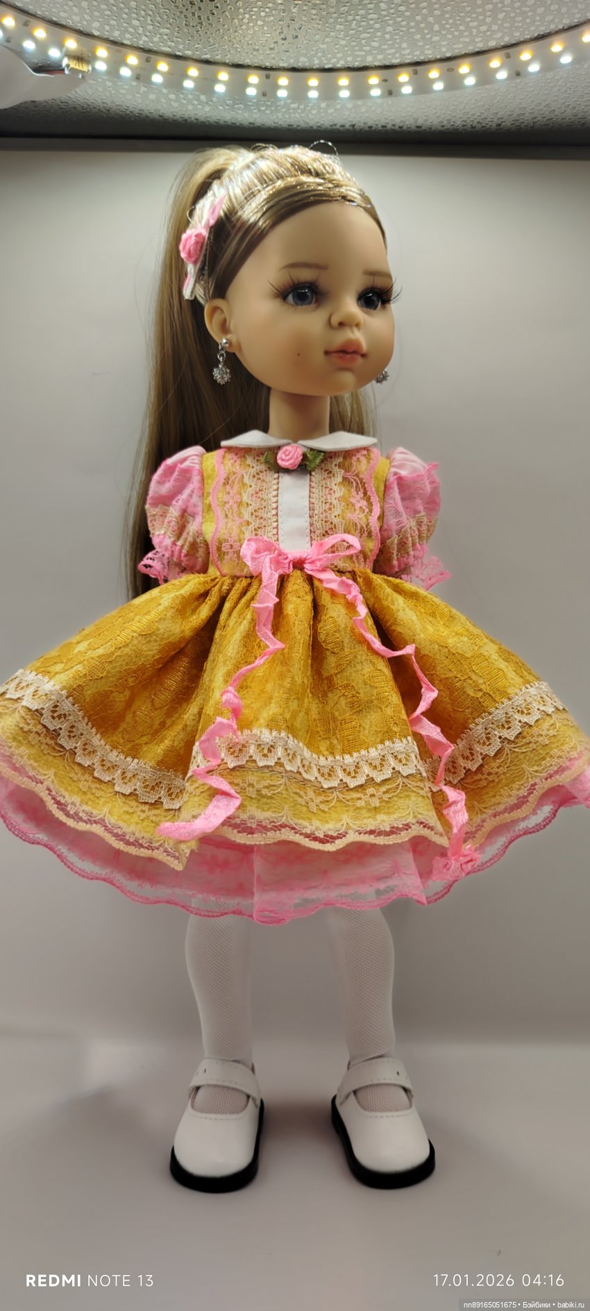 Комплект состоит из распашного платья, выполненного из турецкого хлопкового ранфорса, с застежкой на пришивные металлические кнопочки, белых чулочков из эластичной мелкой сеточки и заколки для волос. br>