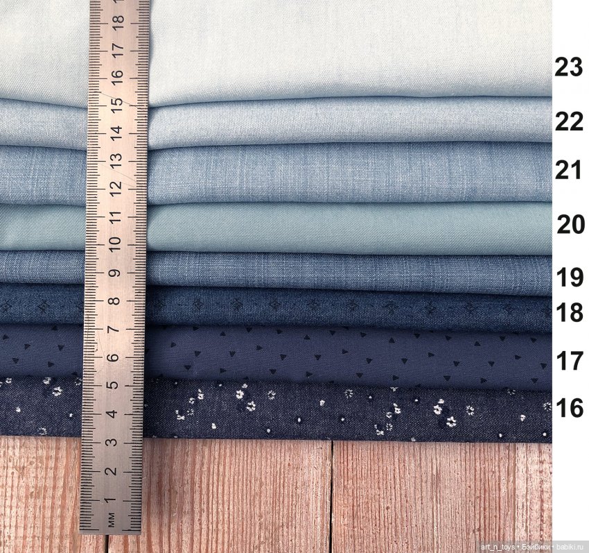 Я готовила ткани для себя, поэтому они все выстираны на самом неделикатном режиме, чтобы избежать окрашивания, и придать одежде куколки более естественный вид.