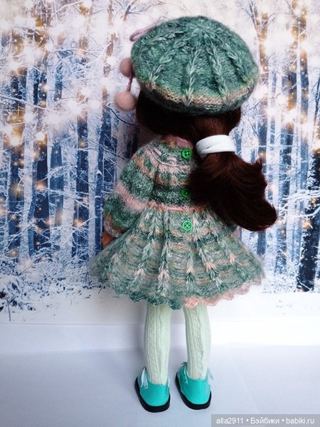 Дорогие гости моего шопика, сегодня новый наряд для Паолочки из четырёх предметов: тёплое зимнее платьице из меланжевого мохера, такой же беретик, нижняя юбочка с кружевом и чулочки.