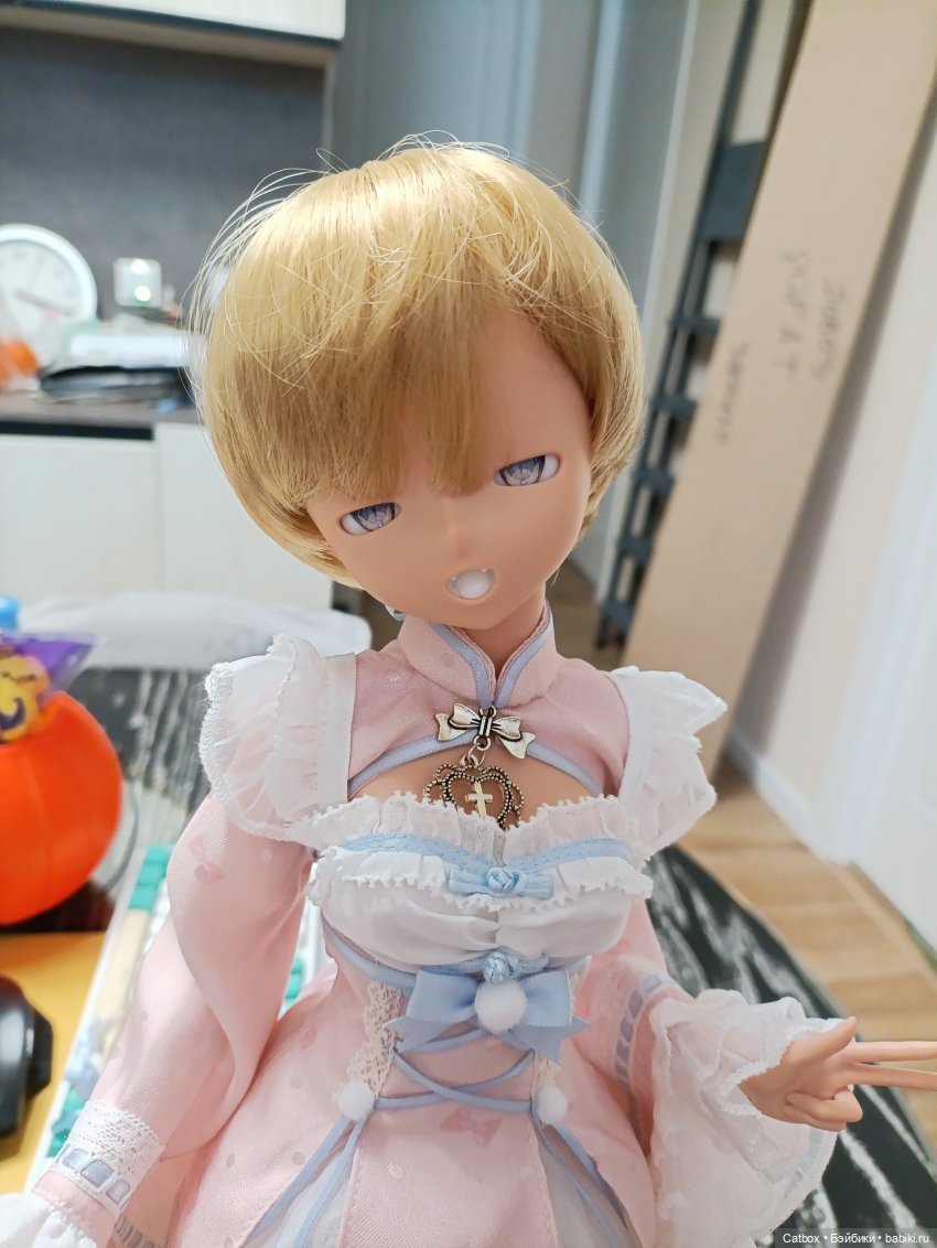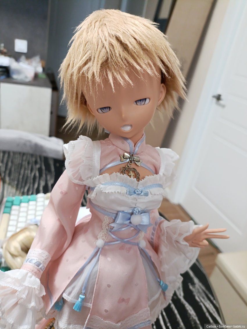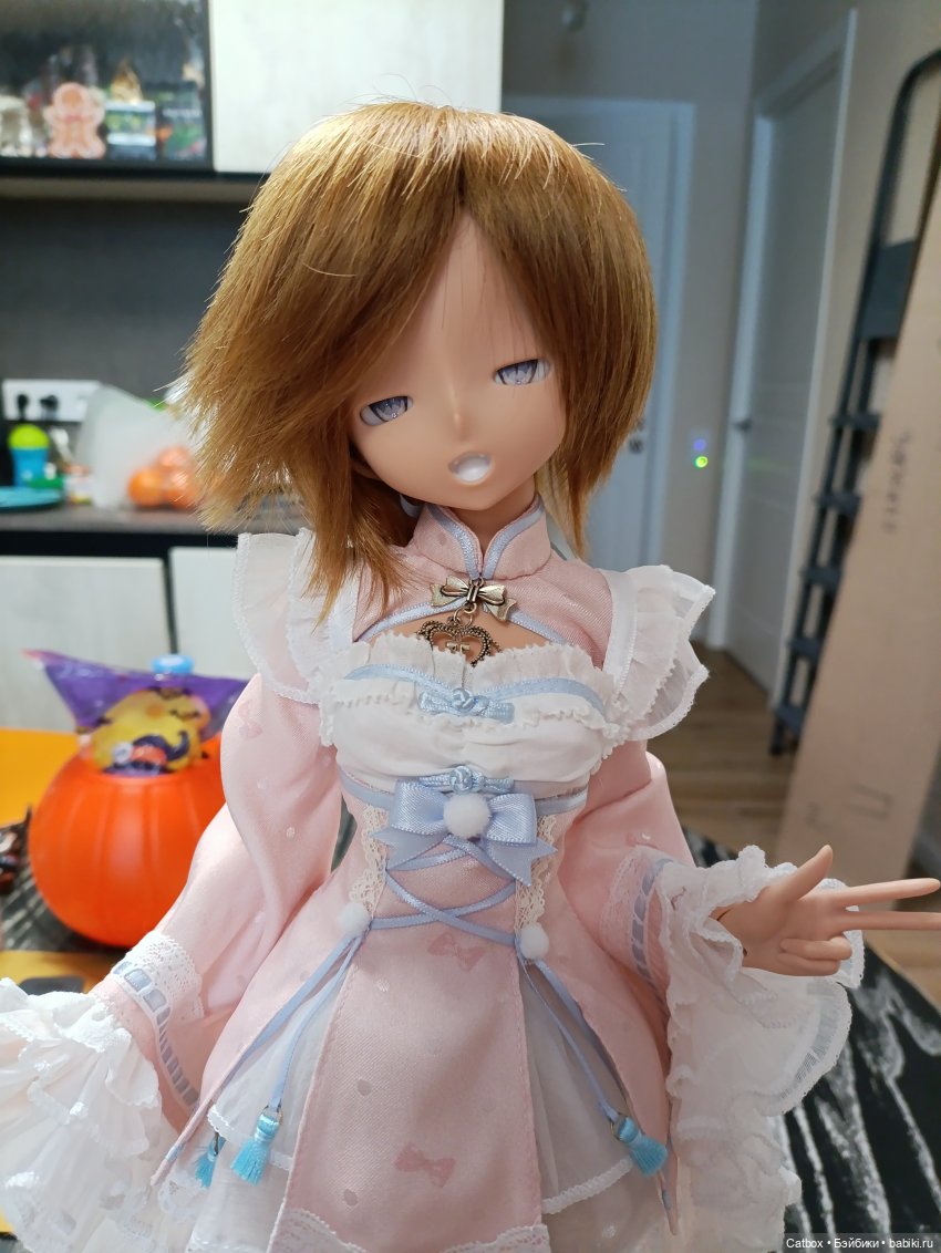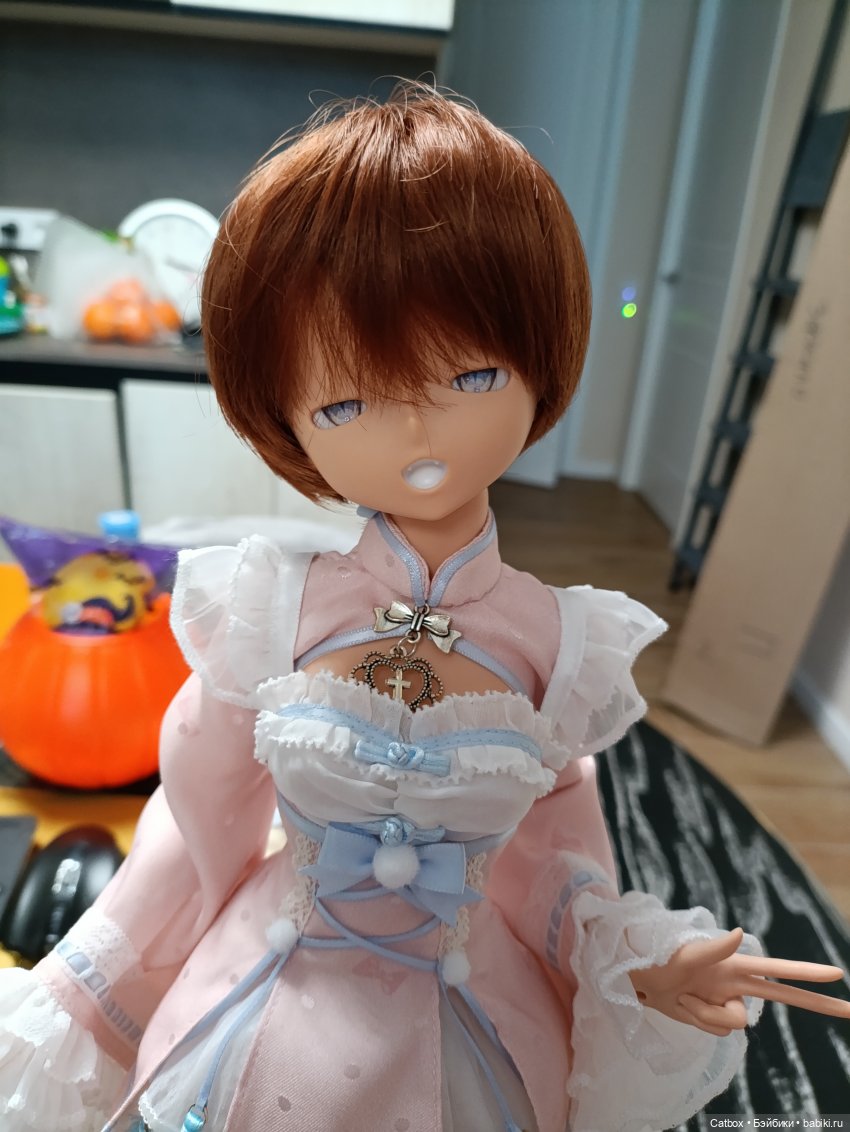 И есть еще вот такой паричок из мохера, он на голову поменьше, 18см, наверное: