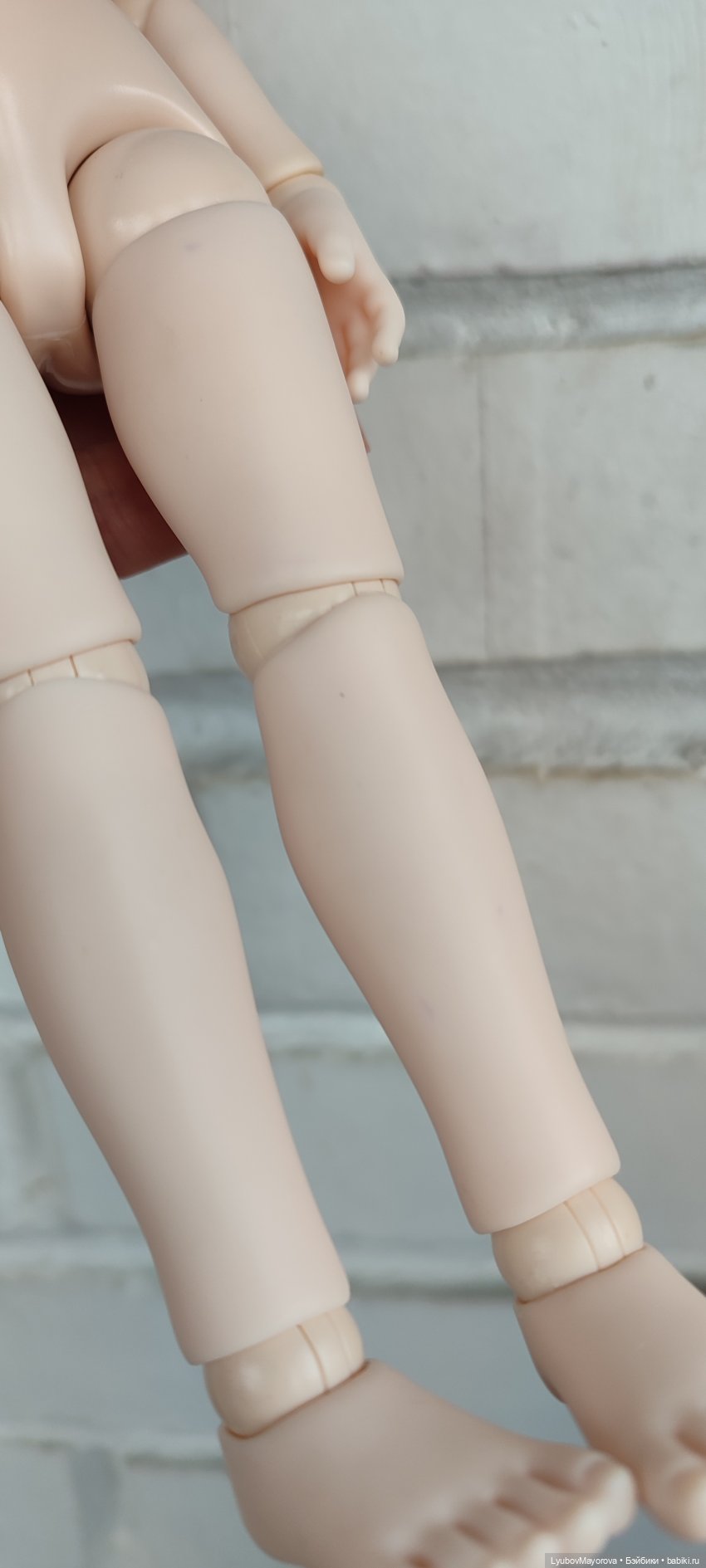 У куколки на ножке присутствуют маленькие, бледные следы от ручки, на лопатке также маленькое бледное тёмное пятнышко (фото добавила в коментарии) Нижние реснички стерлись при замене глаз.