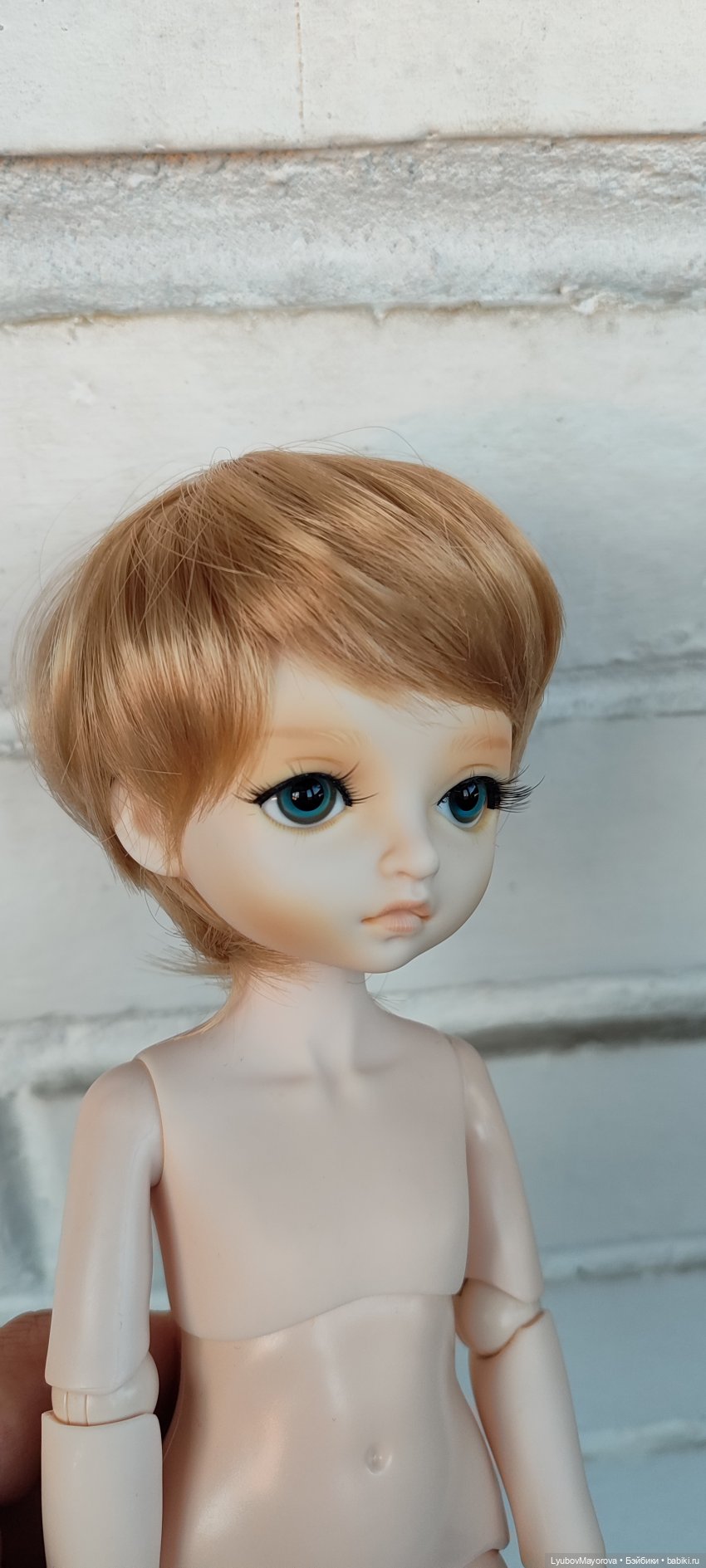 Глазки у куколки заменены на стеклянные, реснички тоже новые, паричёк JUSUNS (7"-8")фабричный Китай.