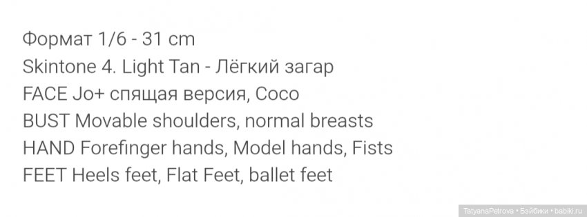 Дополнительные ступни и жестовые кисти, завинчиваются. Глазки от автора на фото, у них радужка меньше: карие и голубые. На моих фото стоят глаза 6/2.9, они тоже хорошо подходят. Глаза не продаются.