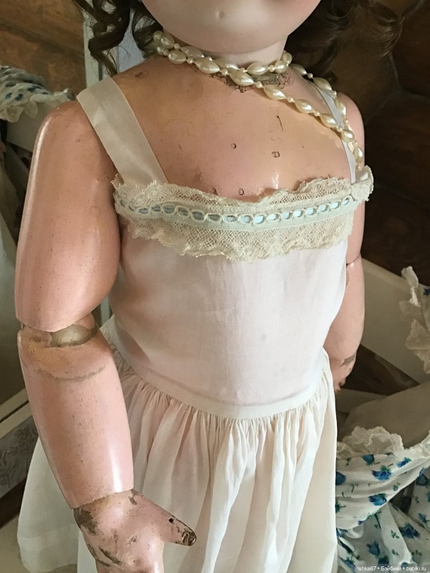 Предлагаю комплект для антикварной куклы ростом около 70 см ( модель на французском теле 68 см). Думаю лучше всего будет смотреться на модной кукле с открытым декольте…