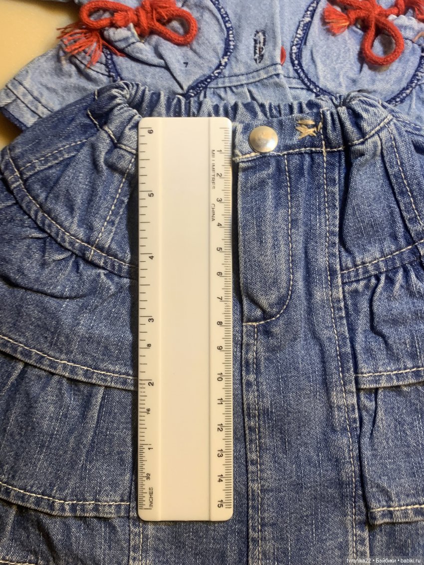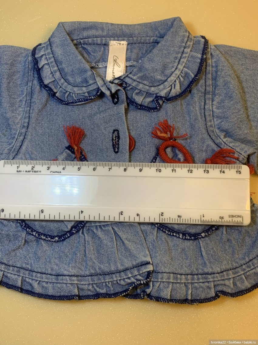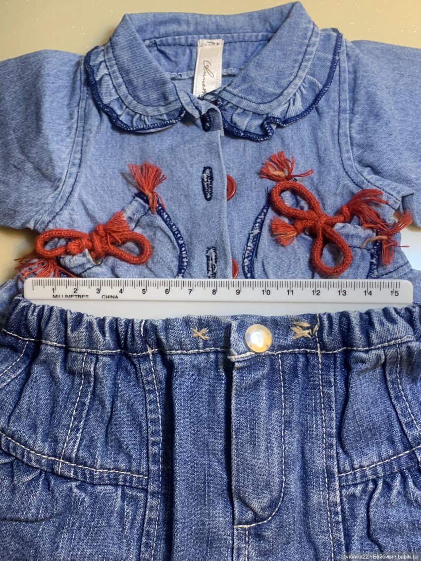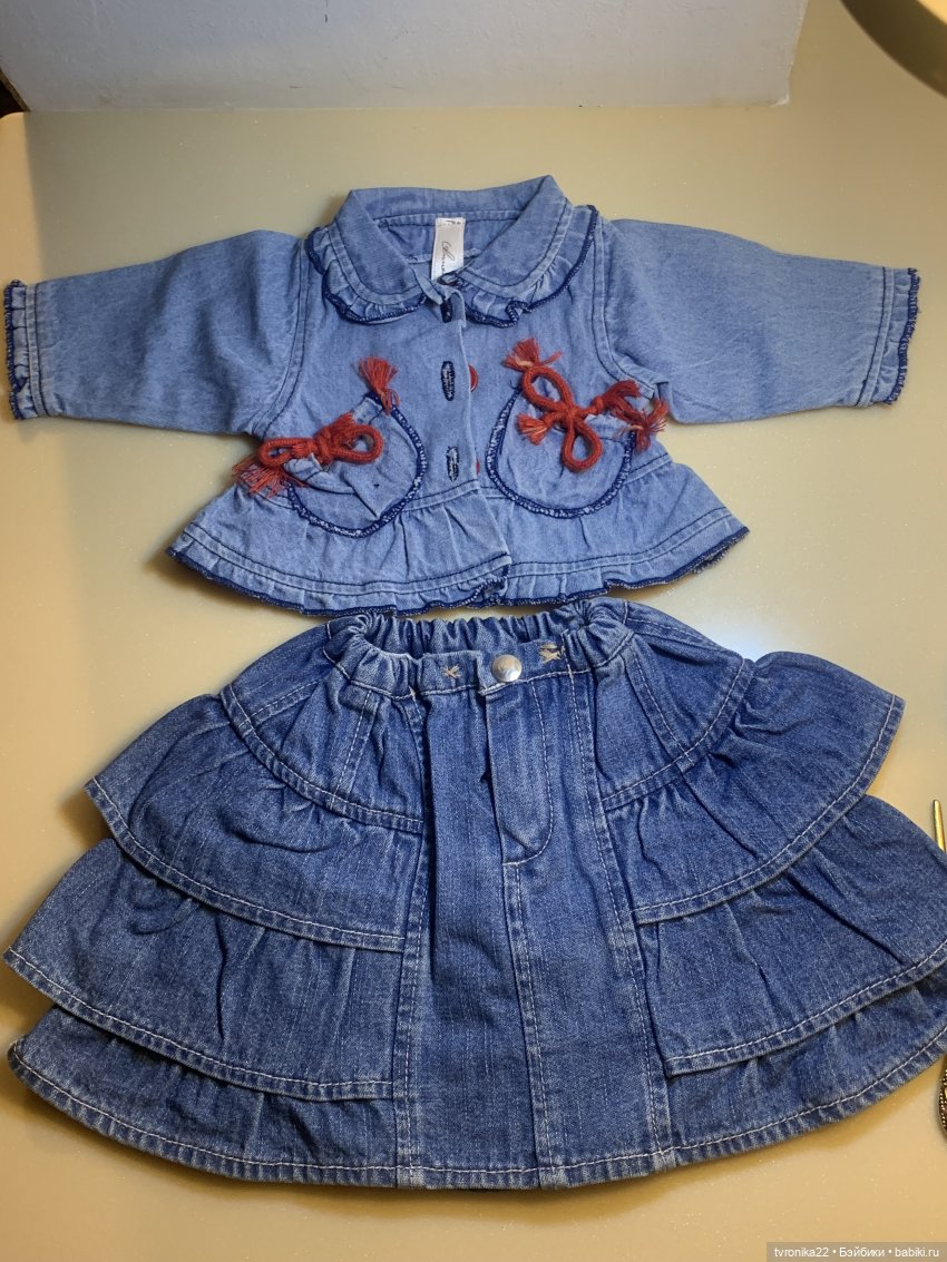Костюм превосходного качества, на очень высоких кукол. Думаю, где-то от 65 см и выше. Точно сказать не могу, потому что у моей самой большой куклы рост 58 см ) Сшит из настоящей плотной джинсы, все кармашки функциональны, пуговицы, молния, кнопки как на взрослой одежде- фундаментально и прочно ) Состоит из укороченного пиджачка на пуговицах и очень пышной, в многочисленных оборочках, юбочки на молнии и на большой металлической кнопке. Бирки с автографом Аннет Химштедт вшиты во внутренние швы каждой вещи. Костюм пролежал в шкафу несколько лет, на моих кукол не надевался, поскольку таких больших девочек у меня нет, не прижились, к сожалению. Вещи чистые, без посторонних запахов ( всё хранилось в герметичном пакете). Вот только дошли руки наконец-то всё, что мои куклы не носят, продать. А не носят они много чего) Фото с размерами этого костюма я размещу в комментариях.