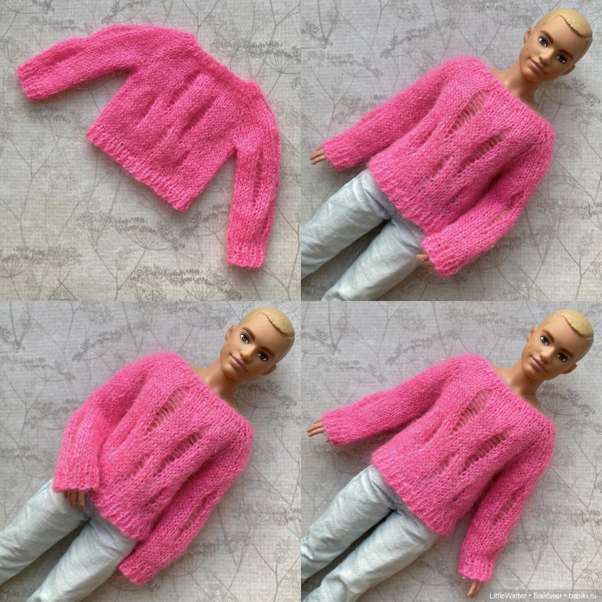 Вязаный «рваный» джемпер из мохера для Кенов, Интегрити, Экшенов и похожих парней 1/6, также может подойти некоторым YOSD-бжд или авторкам
