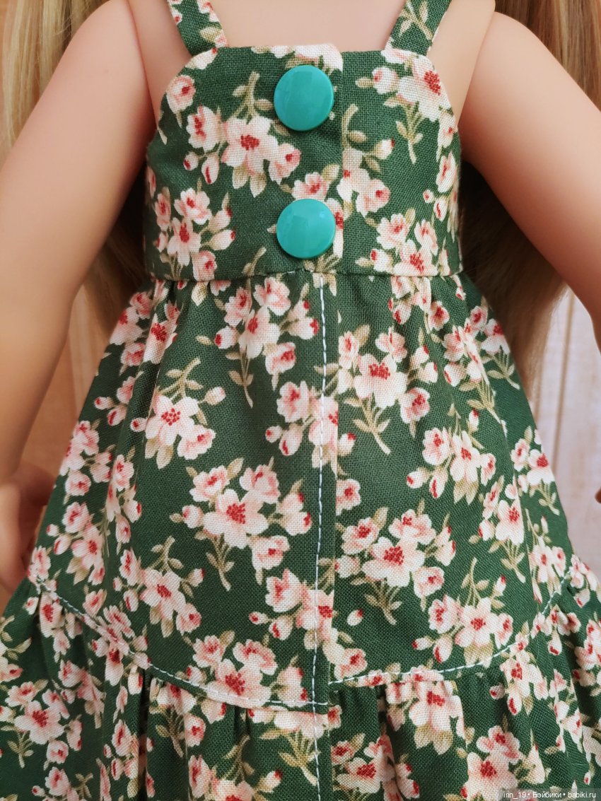 2ф- Сарафан, т.зеленый, в цветочек, хлопок, распашной, лиф на белом подкладе, на кнопках. Цена — 350р.