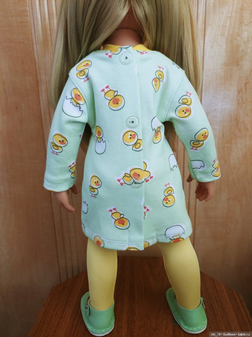 1ф-Костюмчик- туника- платье, трикотаж, цыплята, распашная, на кнопках + колготки жёлтые плотные, шелковистые. Цена — 400р.<