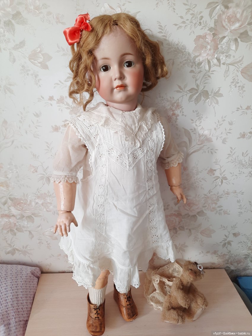 Следы времени есть, на теле, головушка без дефектов. Одежда, обувь- на фото, всё антик, родное.Доп.фото, вопросы, пишите.