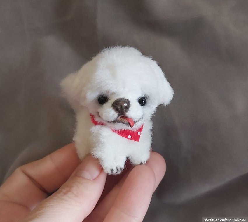 Маленькая собачка породы пекинес размером около 5 см сшита из итальянского плюша.