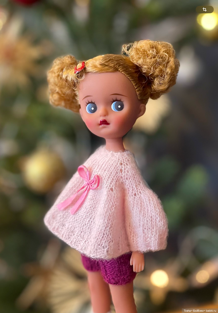 2) желтоватого оттенка из смесовой пряжи (немного рыхлая вязка) — 800 руб. (представлена на кукле Littleberry);