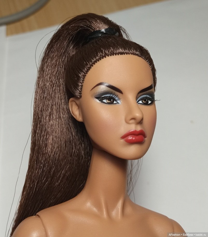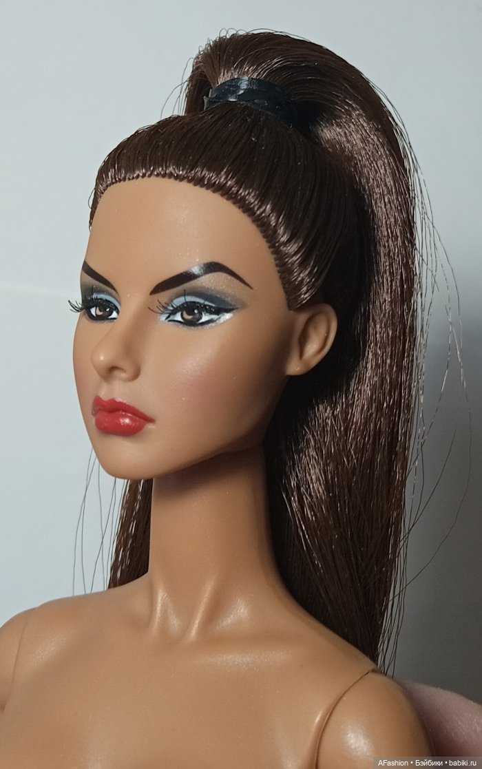 Имеются фабричные моменты — неровные швы, белесоватые швы, тонкая полоска-трещинка на нога. Прозрачная резинка рассохлась, заменила на чёрную. Причёску родная, волосы не мыли. Шарниры не тугие, мягкие, форму держат.