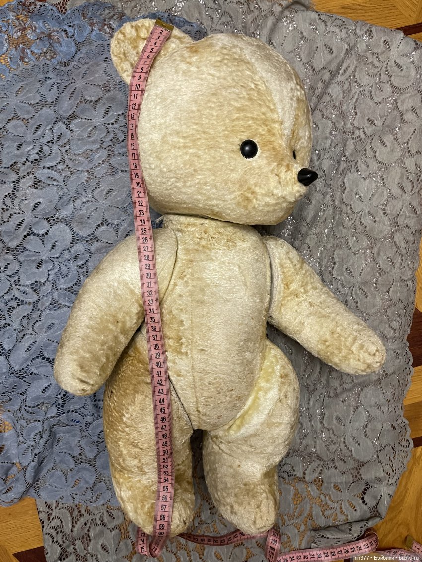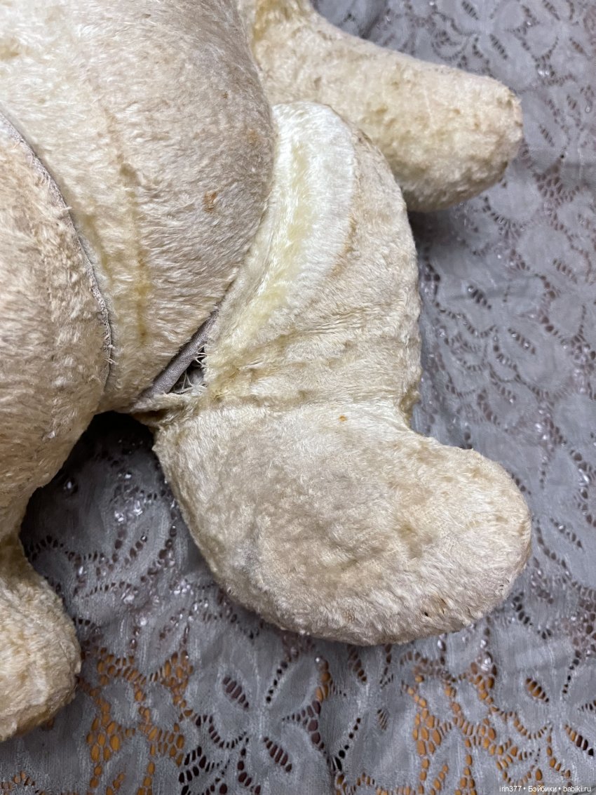 Продается Мишка плюшевый СССР, размер 60 см. Есть разрывы в области шплинтов-дисков. Голова немного деформирована. Набит плотно, набивка родная, тяжелый. Голова, лапа крутятся. Возраст примерно 60 годы.