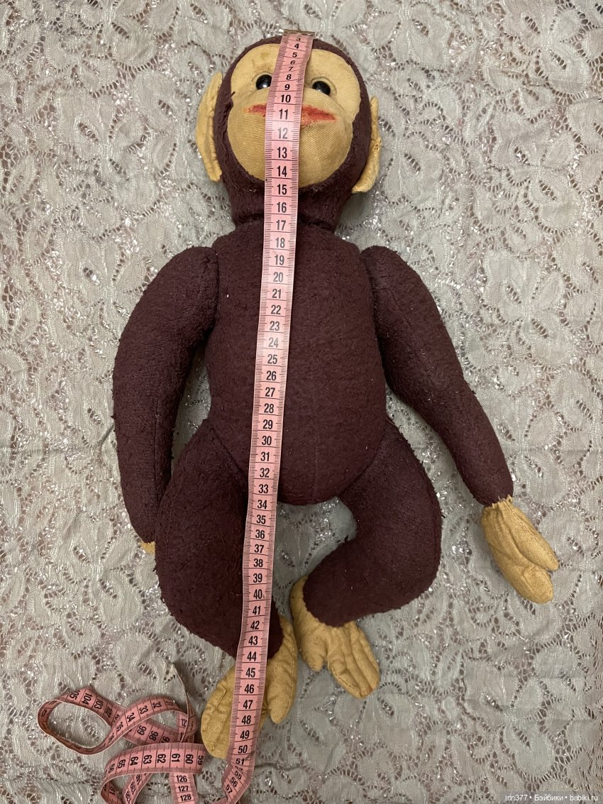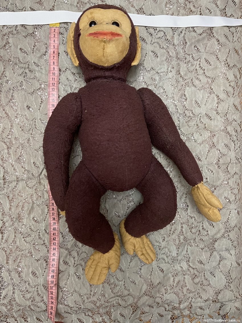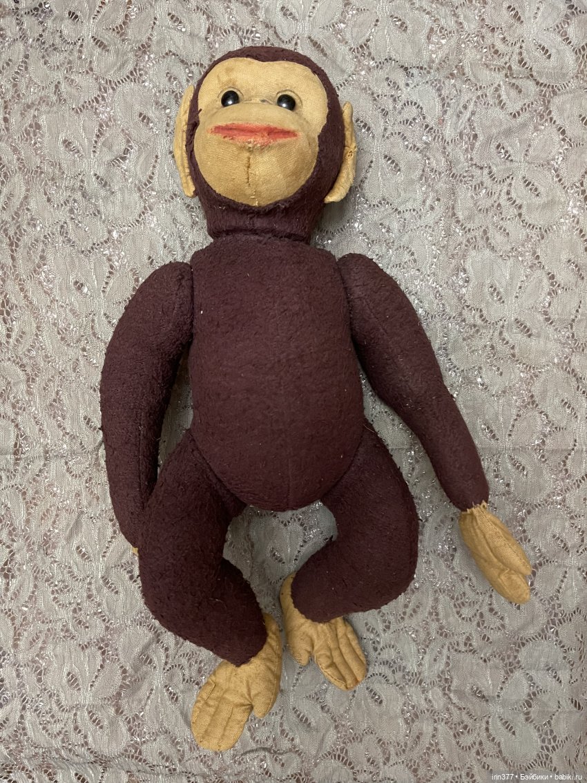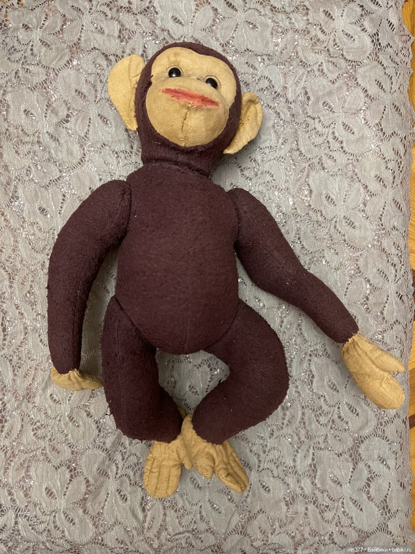 Продается Редкая обезьянка Чита СССР 50 годы. На одном ушке есть дырочки на ткани. Потертость на затылке, но в целом состояние очень хорошее. Размер лежа около 50 см. Голова, лапы крутятся. Голова твердая.