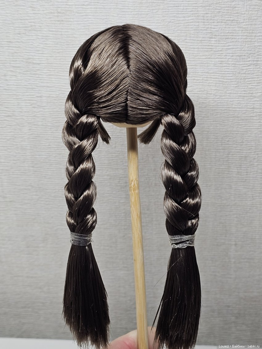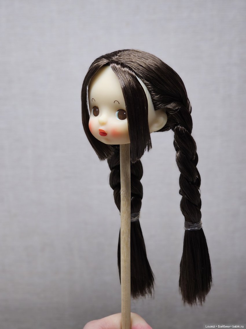 Я не первый владелец. Мной были переуложены волосы в аккуратные косички и обработана чёлка. Волосы чистые, рассыпчатые в распущенном состоянии, косы волосок к волоску, обработаны укладочным средством, кончики кос подровняла. В целом я провела с волосами большую работу и полностью ею довольна.