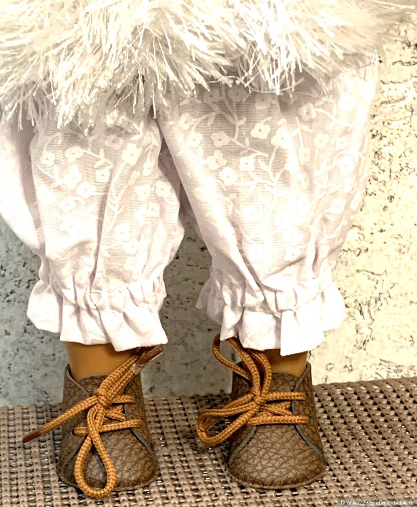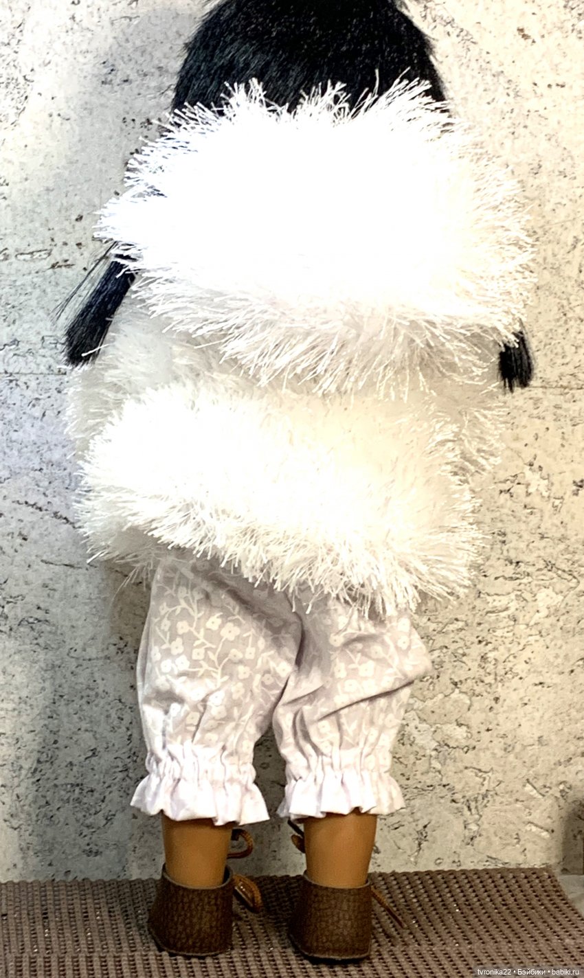 С куклой приедет дополнительный комплект одежды, состоящий из панталончиков и шубки.