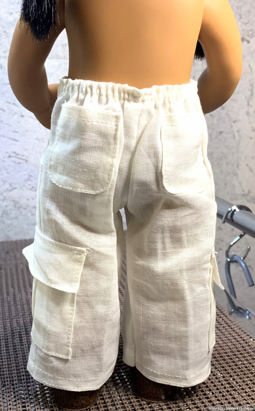 Льняных брючек- карго на резинке сзади, со множеством функциональных карманов,