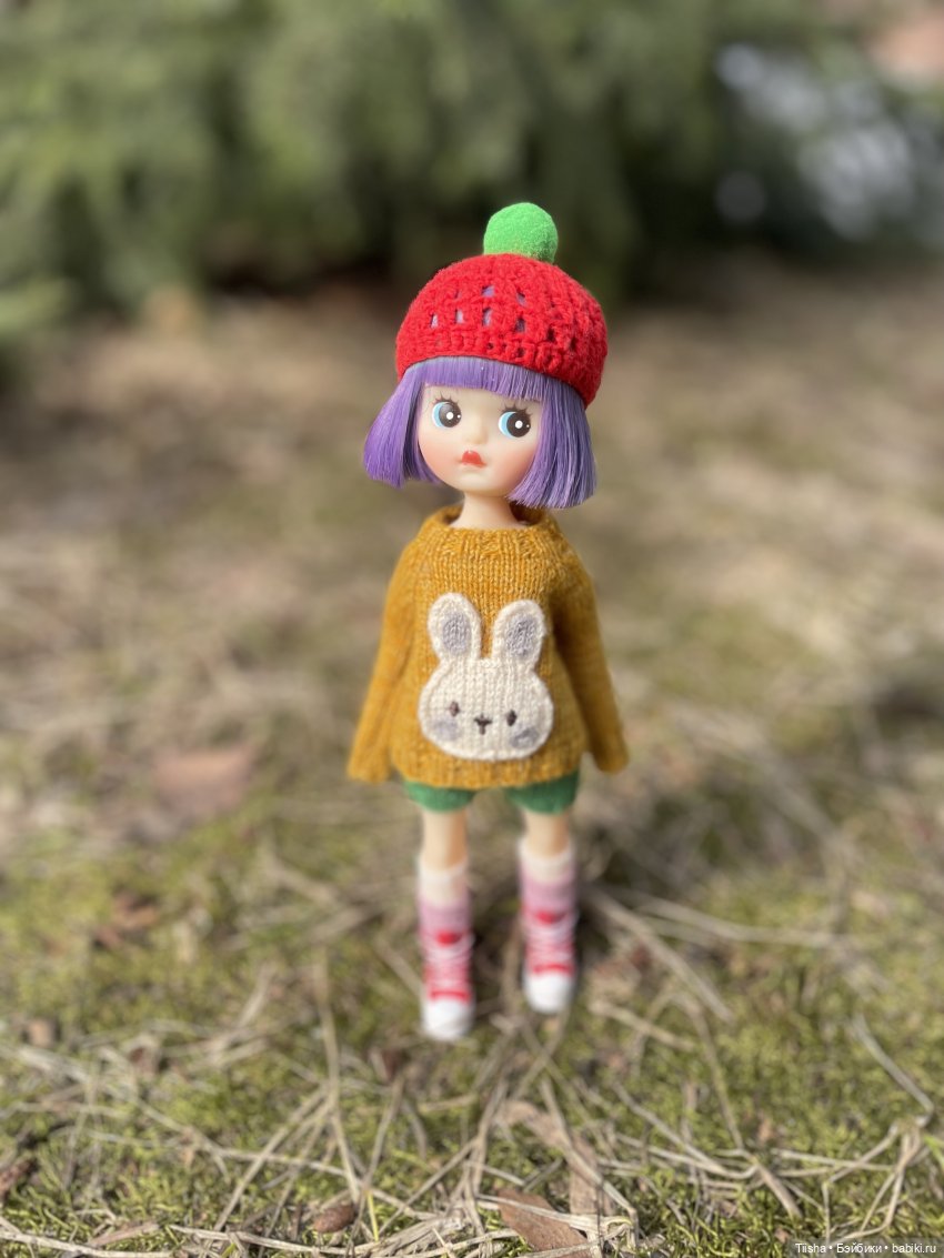 Кофточки из итальянской пряжи с аппликацией для Blythe, ob22, monst. Holala, Strawberry и подробных кукол. Шапочки размера 6-7’’