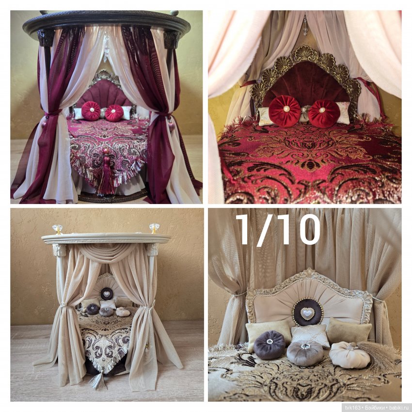 Кровать для кукол с балдахином, бежевая. Дерево. Трудоемкая, ручная работа.