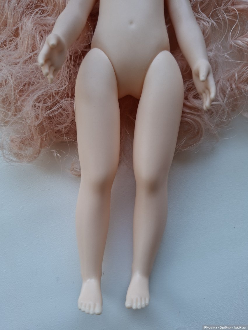 Мейк в порядке. Красивая авторская причёска из длинных волнистых локонов (я причёску не трогала, не мыла, не расчёсывала). Пять точек артикуляции. Голова наклонно-поворотная. Единственное — есть небольшой трабл с ножками. Одна чуть короче. Но девочку можно поставить (саму, без опоры) и в обуви, и босиком, подбирая позу.