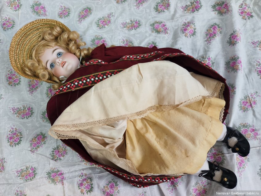 Продаю одну из своих любимиц. Длиннолицая Кестнер, ранняя с квадратными зубками. Рост красавицы 46 см. Голова из светлого фарфора, просвечен, недостатков нет. Глаза необыкновенного голубого цвета с родной установкой. Воск на глазах прекрасно сохранился. Не куколка, а ангел. Фото не совсем передает ее красоту. К сожалению родной парик не сохранился. Зато сохранилось полностью антикварное нижнее белье и платье. Белье было зашито на кукле, пришлось бля фото его снять. Платье из шерсти, имеются дырочки на ткани. Шляпка из соломки тоже думаю родная. Носочки и обувь современные, подбор. Тело в отличном состоянии без протечек, на удивление крепкое. Кожа белая эластичная. Есть точечный ремонт на голени. Руки — фарфор без сколов, а вот кожа на руках возможно заменена. Это единственный недостаток девочки. Кукла очень редкая и невероятно красивая. Хочется найти ей заботливую маму.