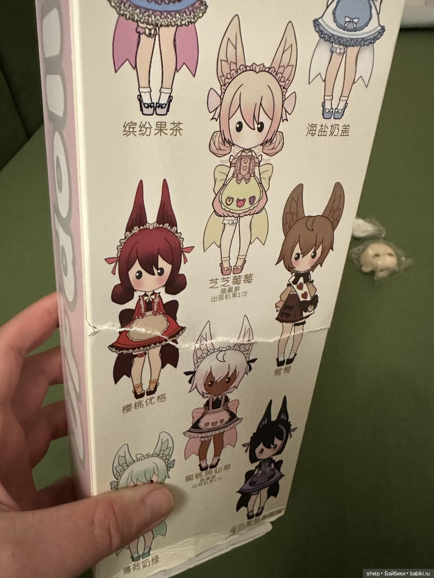Коробка порвана, так как доп лицо и уши, при транспортировке, были примотаны сверху в этом месте. Внутри коробки места для них не нашлось)) Сами лицо и уши целые, кукла внутри тоже не пострадала, но коробка треснула.