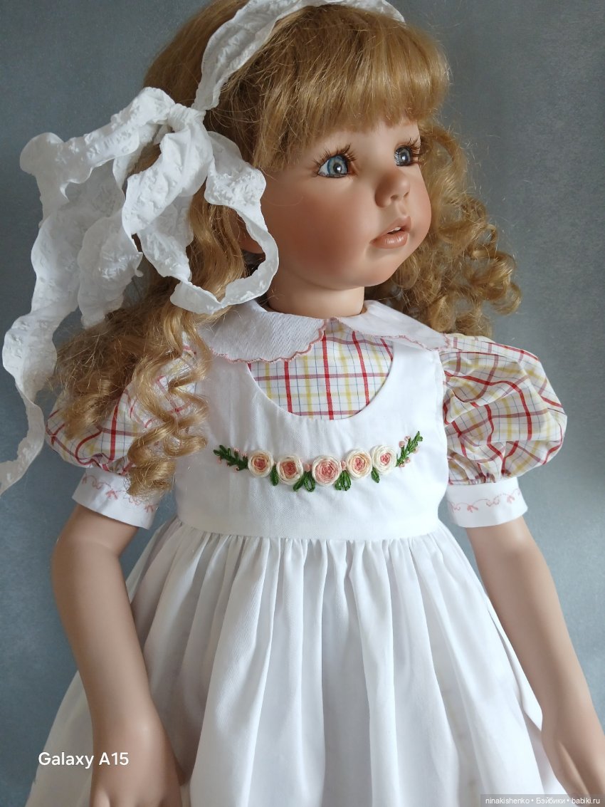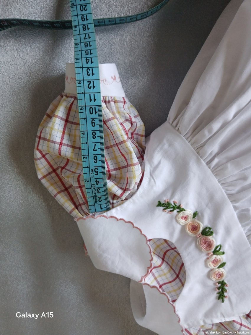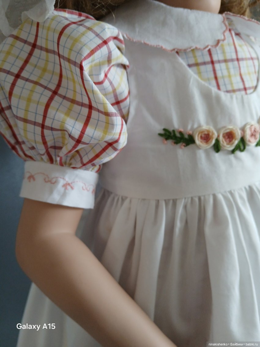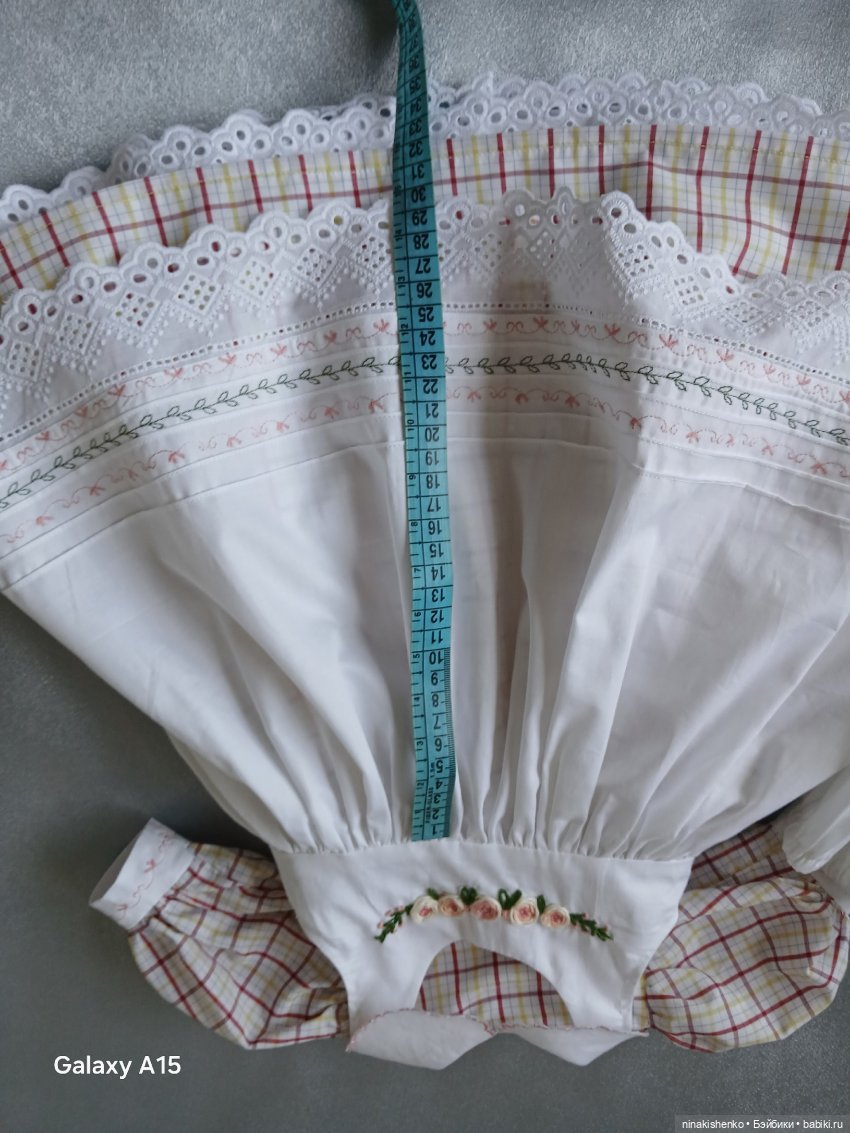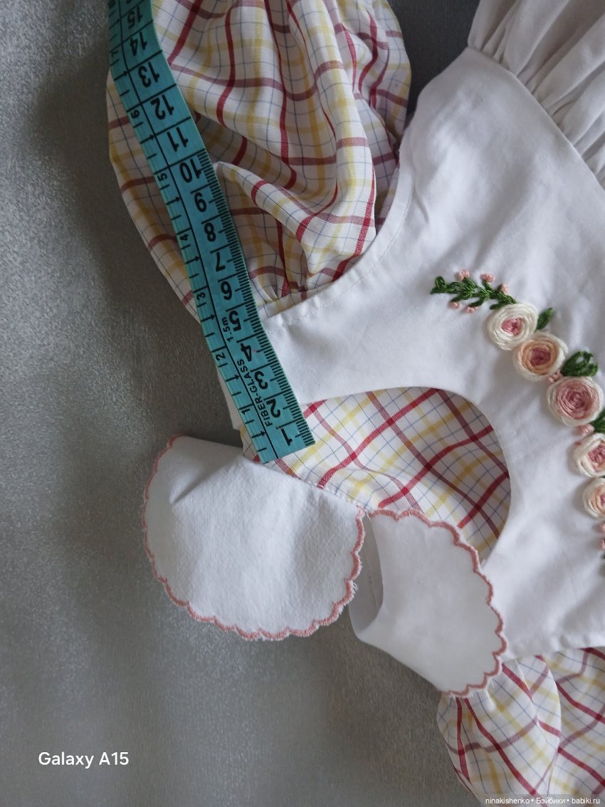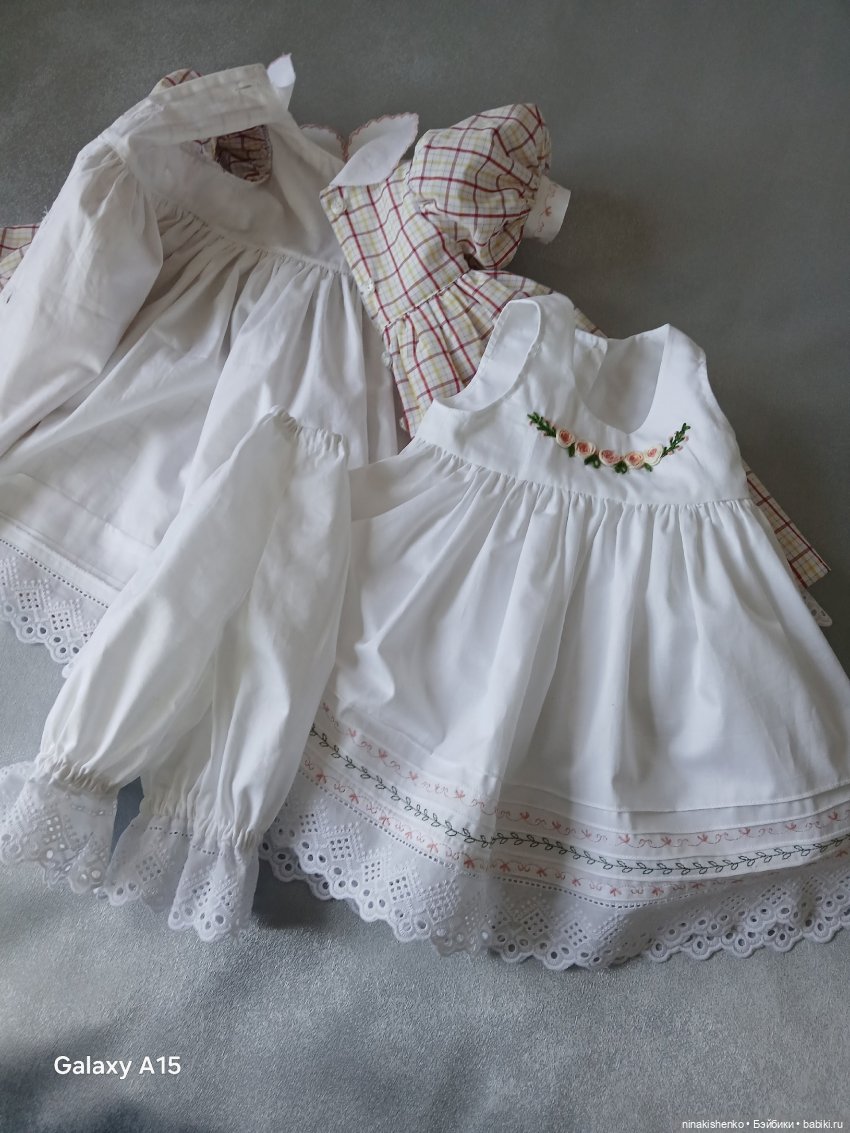Платье распашное на подкладке, фартук белый с вышивкой, штанишки белые. все швы оверложены, отделка х/б кружево.