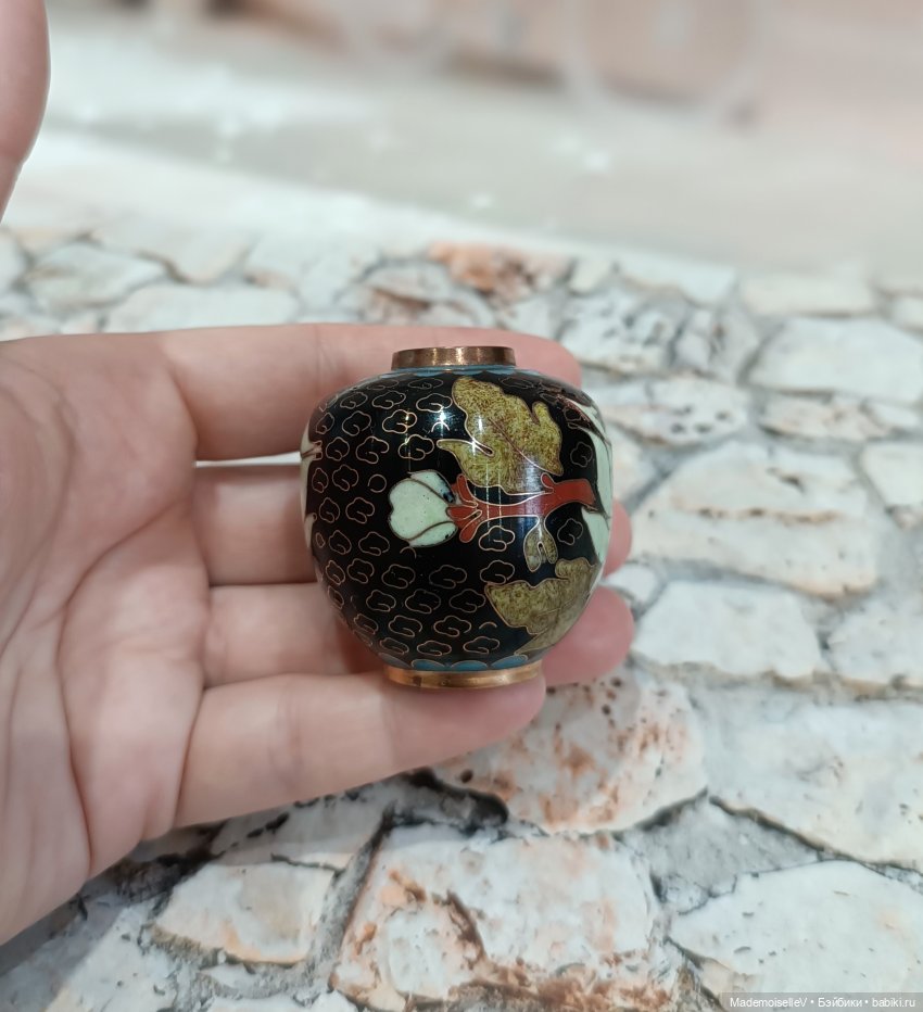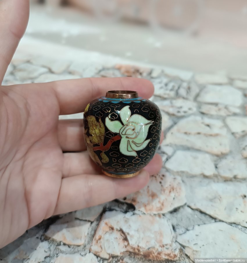 Одна из двух парных чайниц в технике Клуазоне, антиквариат, ручная работа.
